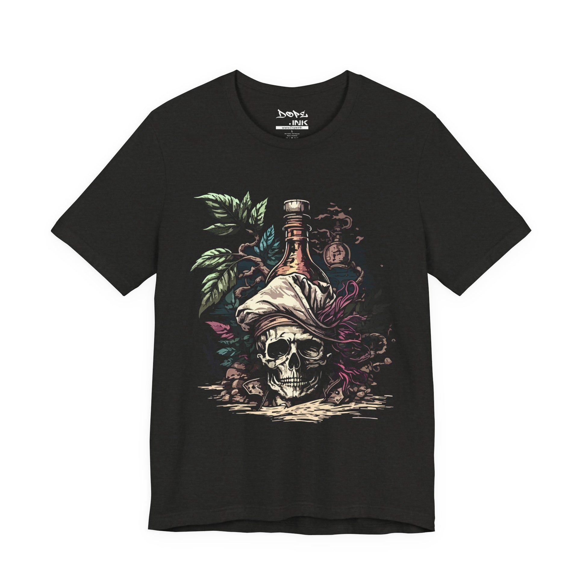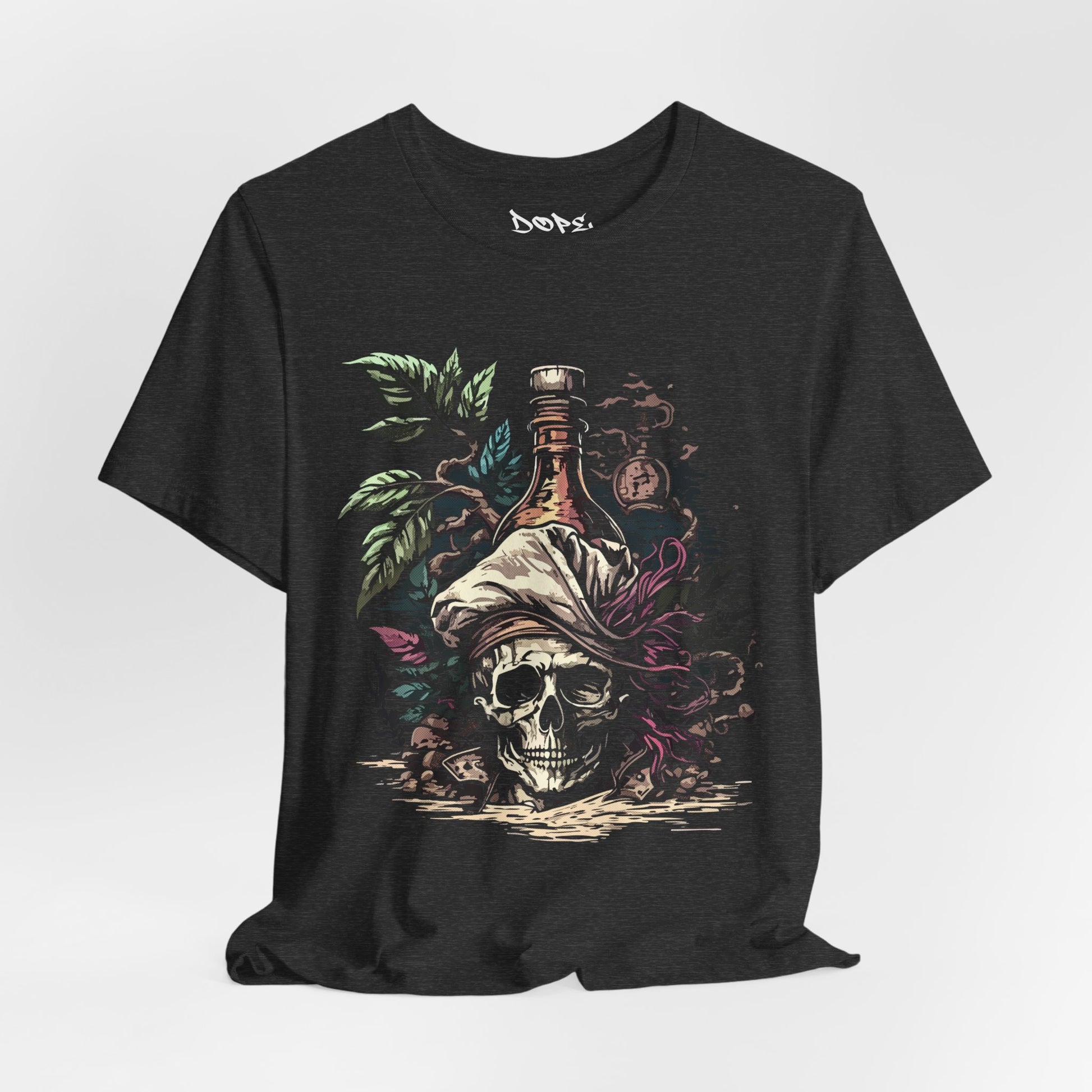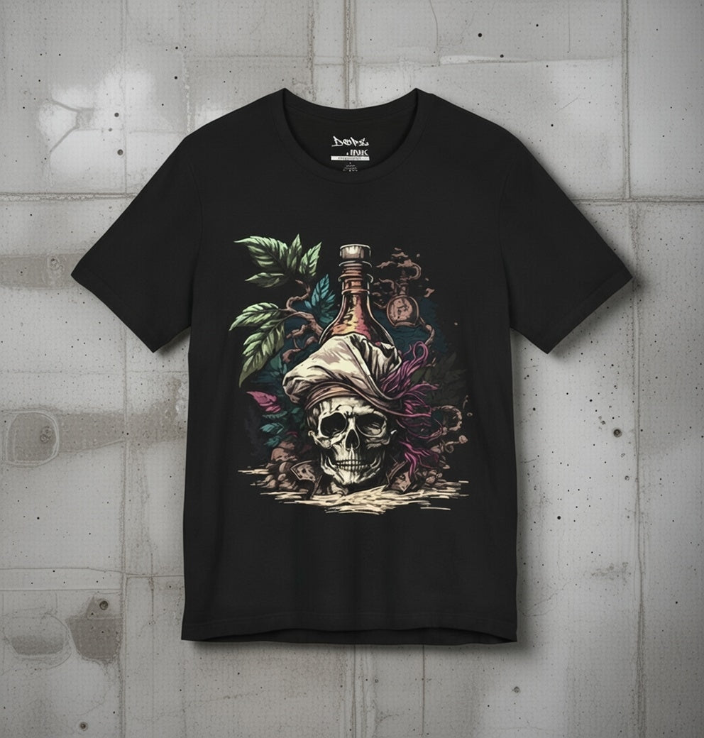 Sail into the unknown with our "Pirate Poison" Streetwear from Dope.Ink! This premium black unisex short-sleeve piece channels cursed treasure vibes with a grinning skull rocking a tattered bandana and feather, a glowing rum bottle perched on top, surrounded by twisted vines and jungle mystery—straight fire for pirate souls, rum runners, adventure seekers, or anyone living that "yo ho ho and a bottle of chaos" life on beach days, parties, or whenever you're plotting your next escape.