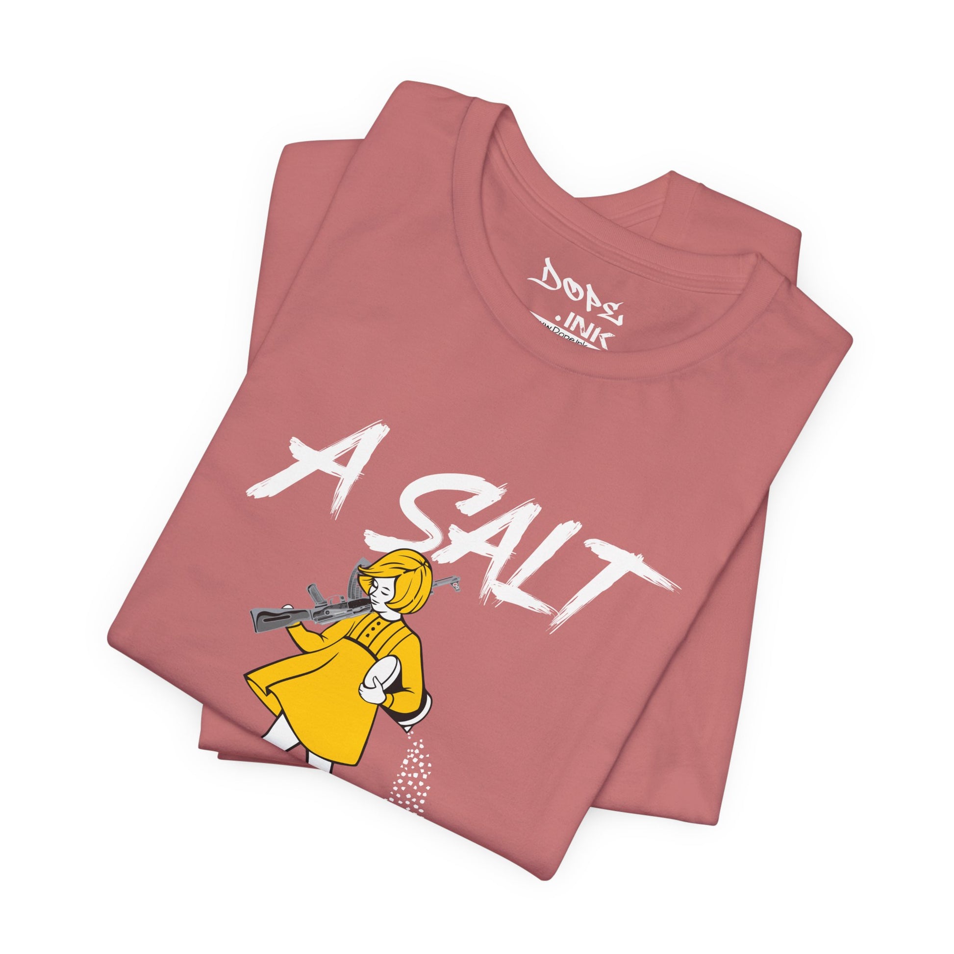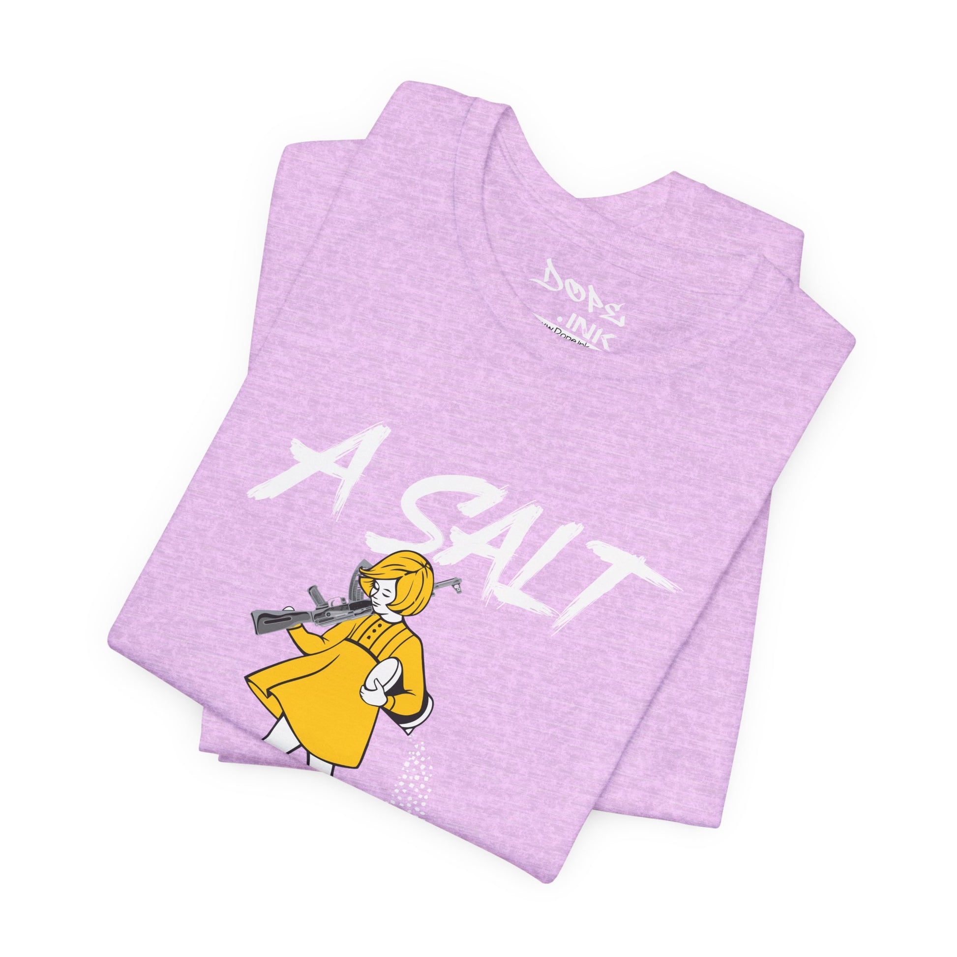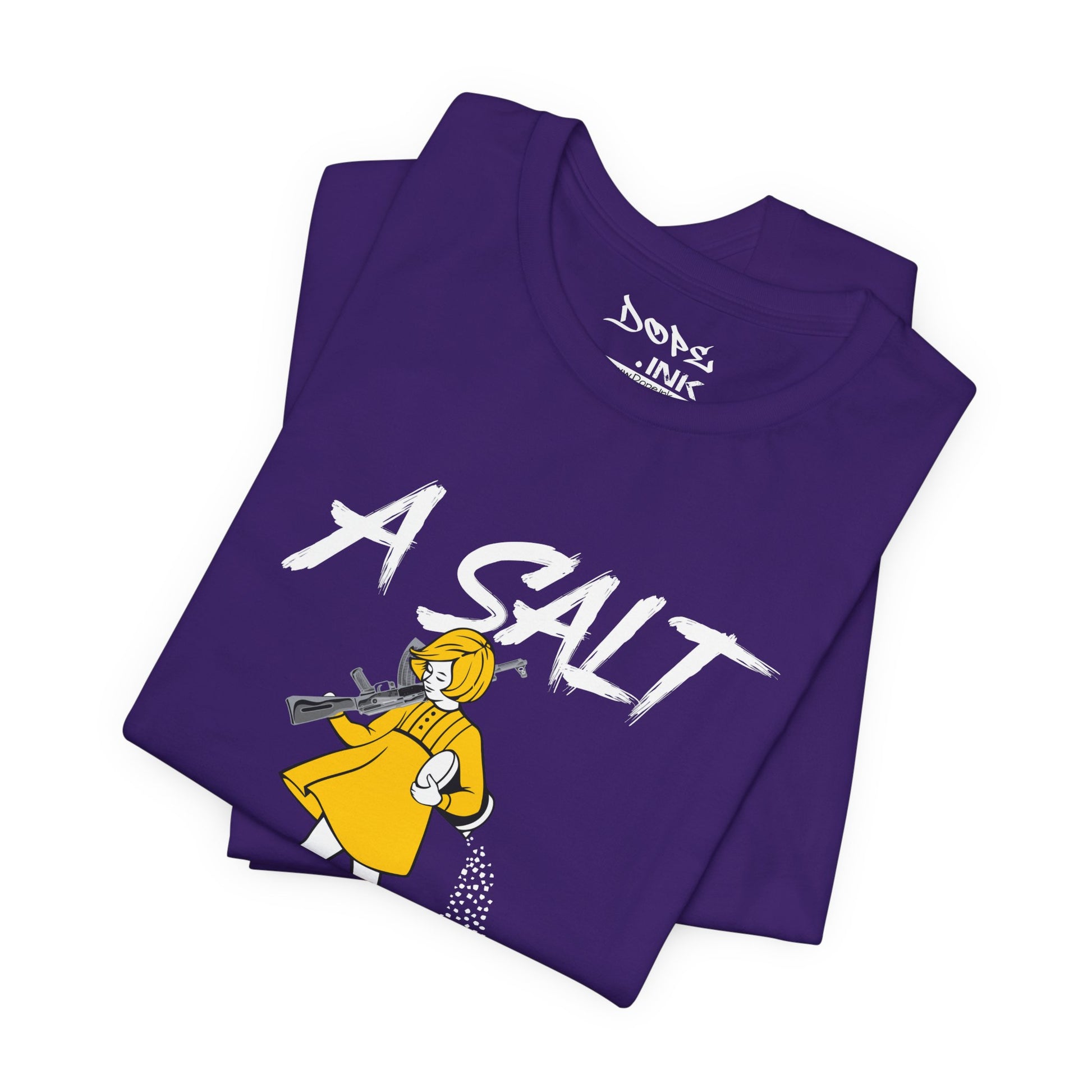 Season your enemies with our "A Salt Rifle" Streetwear from Dope.Ink! This premium unisex short-sleeve piece features a sassy little girl in a yellow dress armed with a massive assault rifle that's blasting a trail of salt—pure petty revenge energy for gamers dealing with toxic lobbies, snack defenders, or anyone ready to throw maximum shade with zero chill on salty days, rage quits, or when the haters need that extra seasoning.