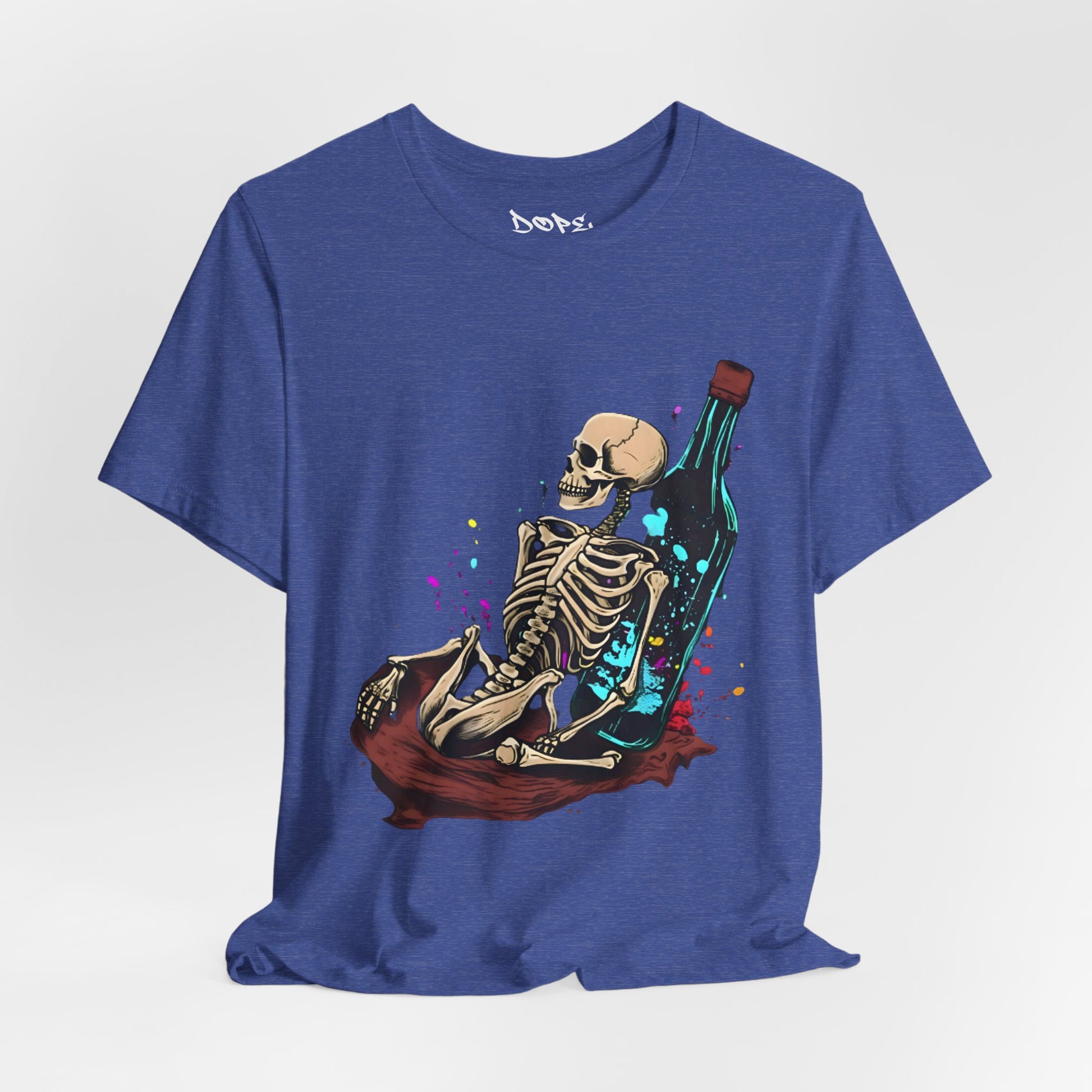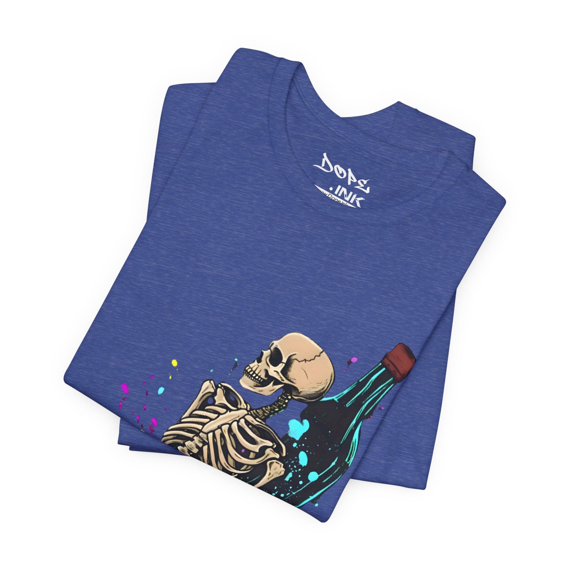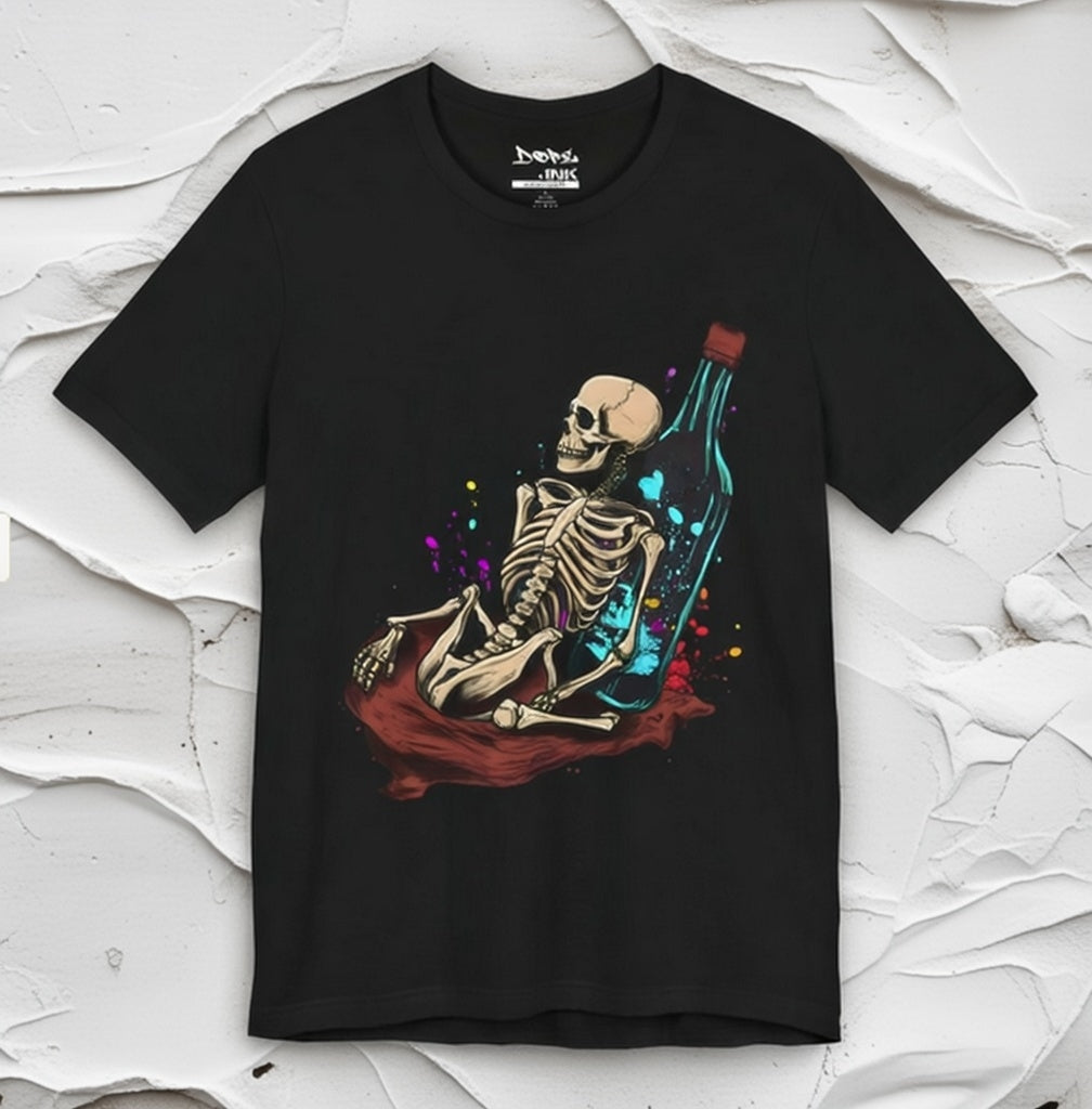 Raise a glass to the afterlife with our "Eternal Toast" Streetwear from Dope.Ink! This premium unisex short-sleeve piece shows a chill skeleton lounging against a massive glowing bottle, surrounded by colorful splashes of cosmic vibes—perfect for night owls, party rebels, or anyone embracing that dark humor, "live forever" energy on wild nights, chill hangs, or whenever you're feeling immortally sarcastic.