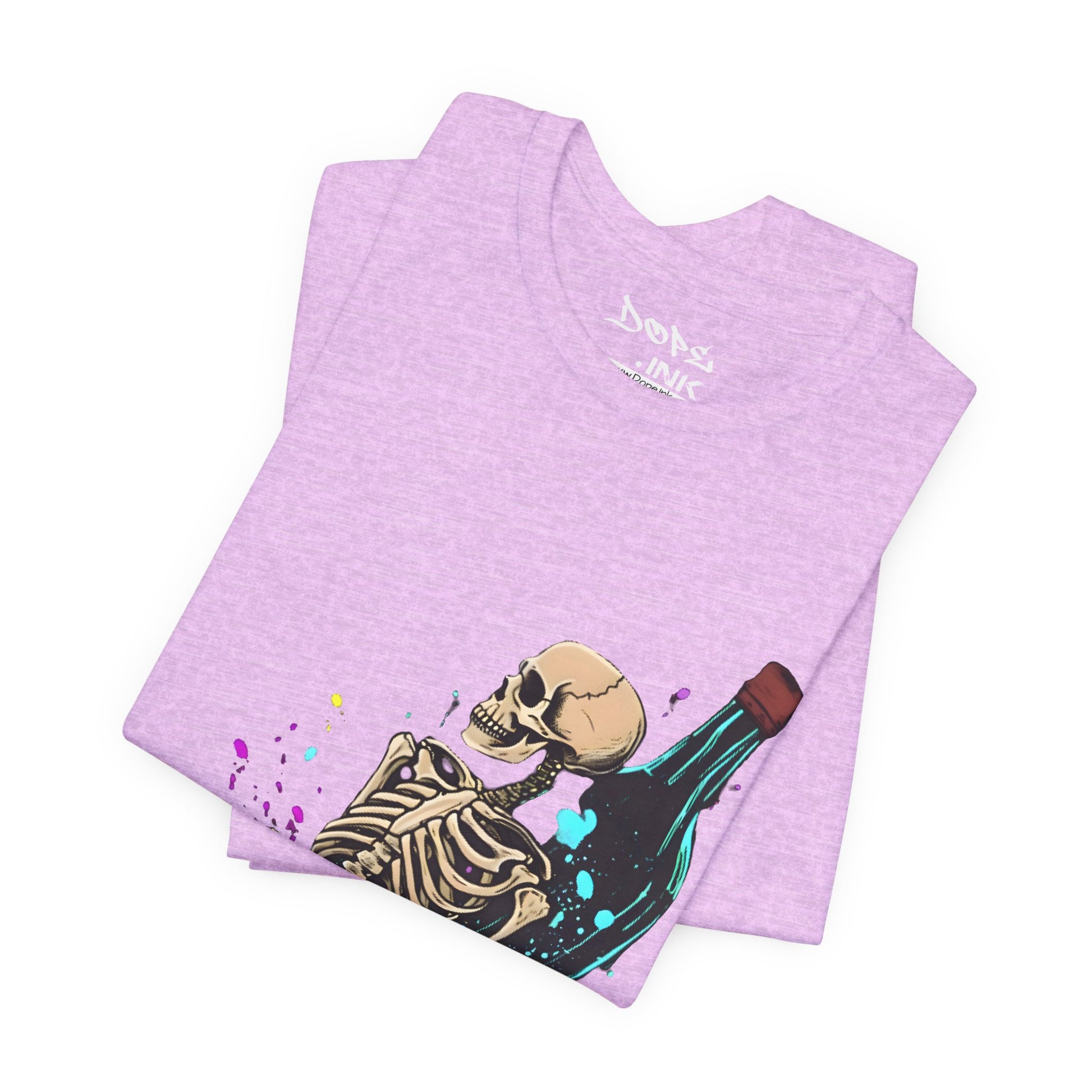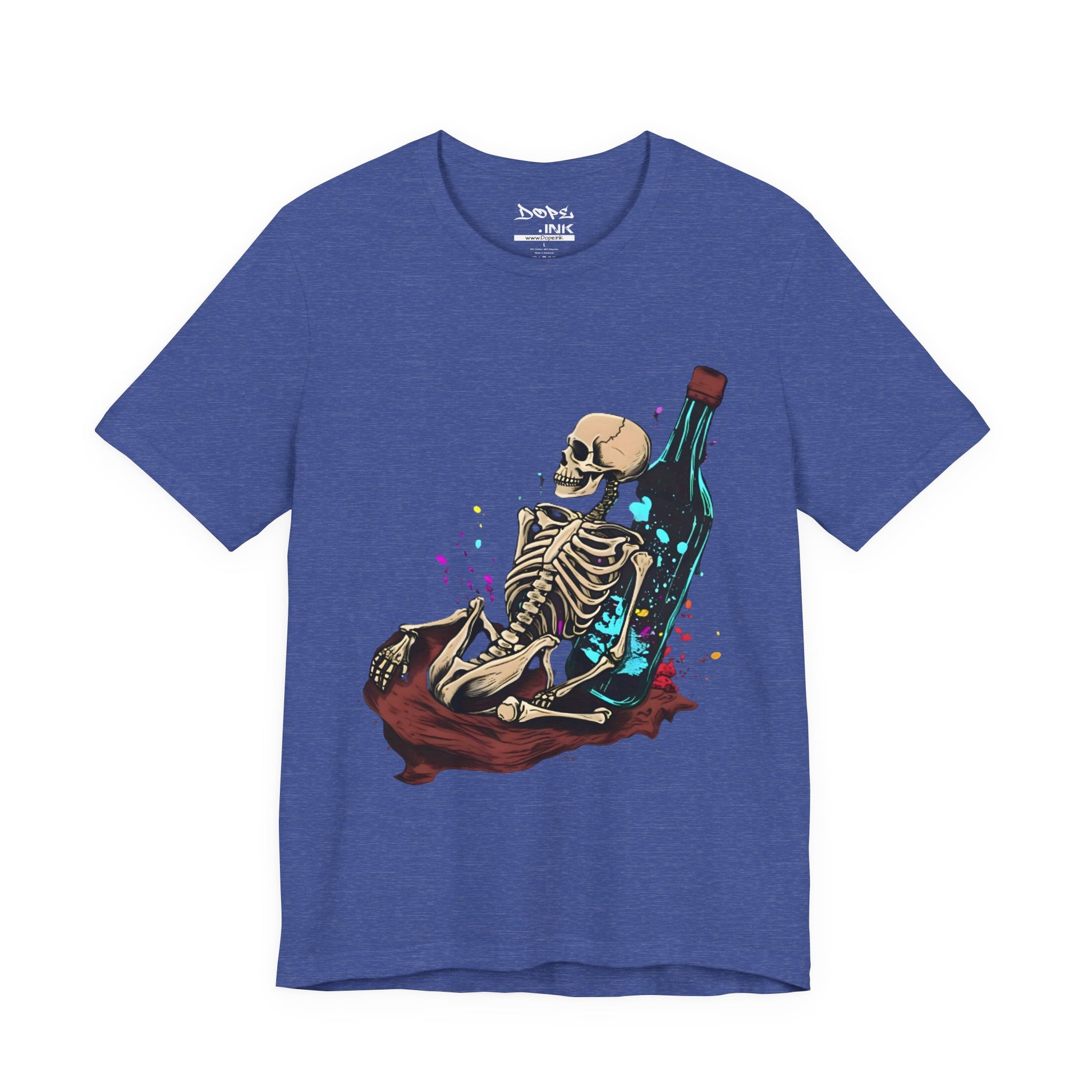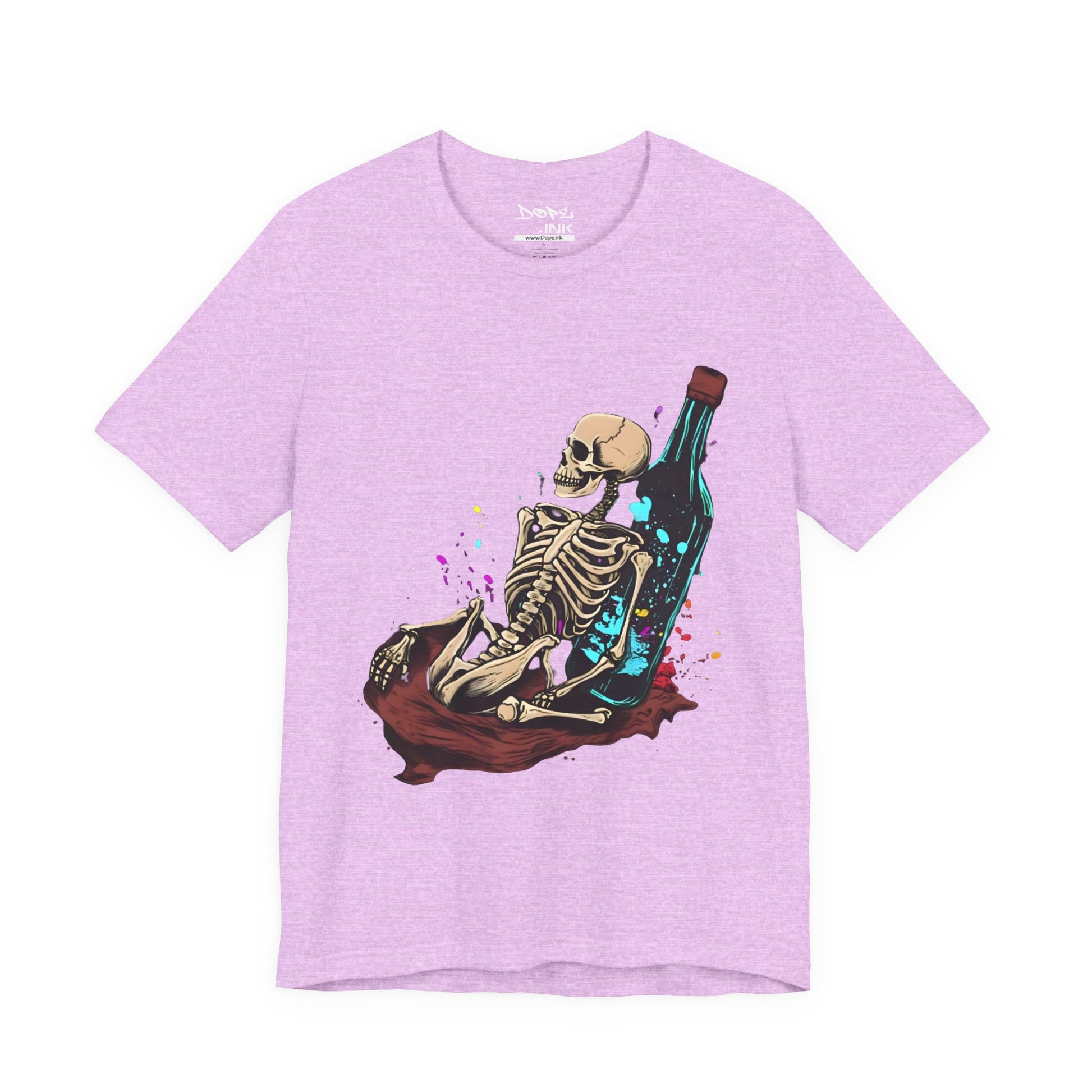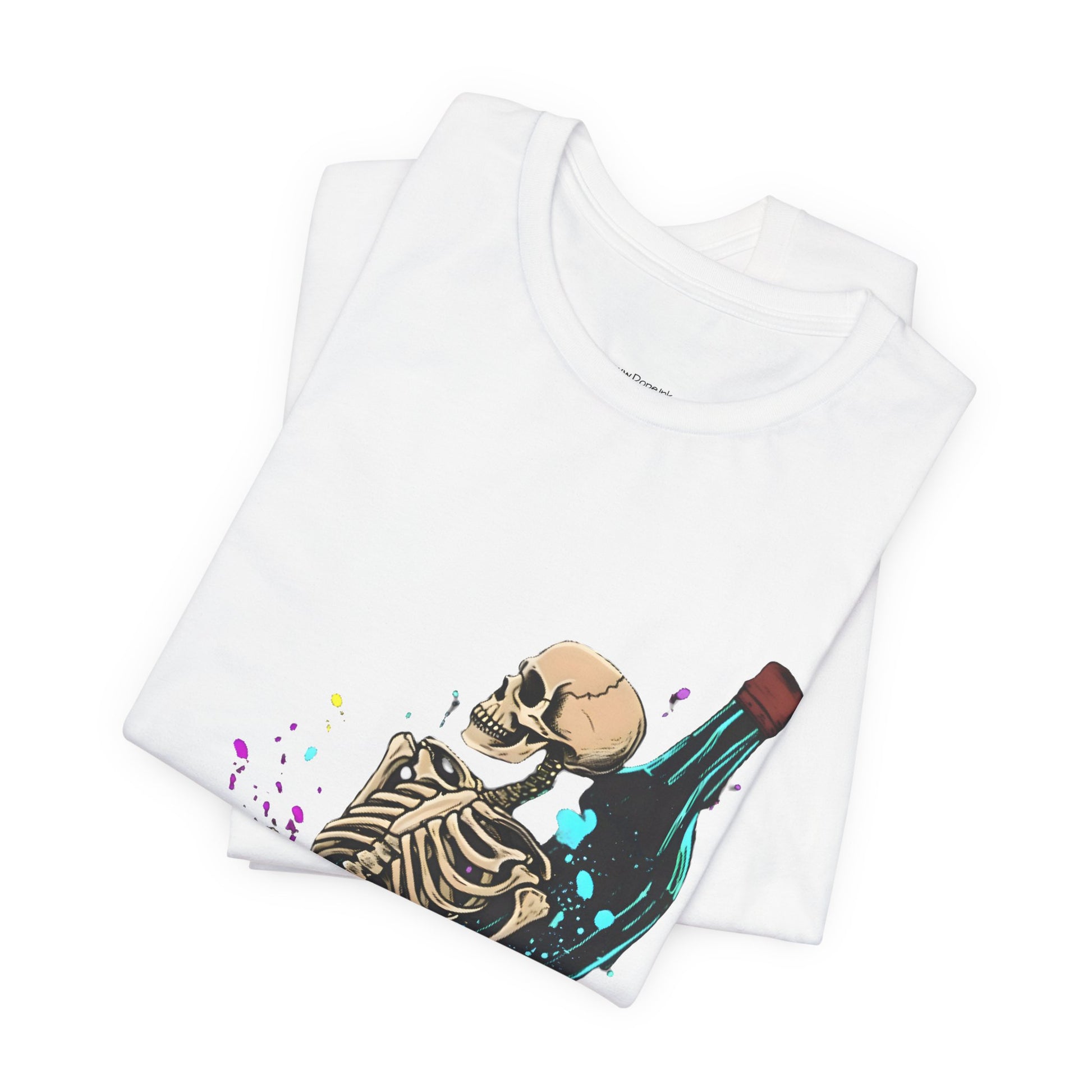 Raise a glass to the afterlife with our "Eternal Toast" Streetwear from Dope.Ink! This premium unisex short-sleeve piece shows a chill skeleton lounging against a massive glowing bottle, surrounded by colorful splashes of cosmic vibes—perfect for night owls, party rebels, or anyone embracing that dark humor, "live forever" energy on wild nights, chill hangs, or whenever you're feeling immortally sarcastic.
