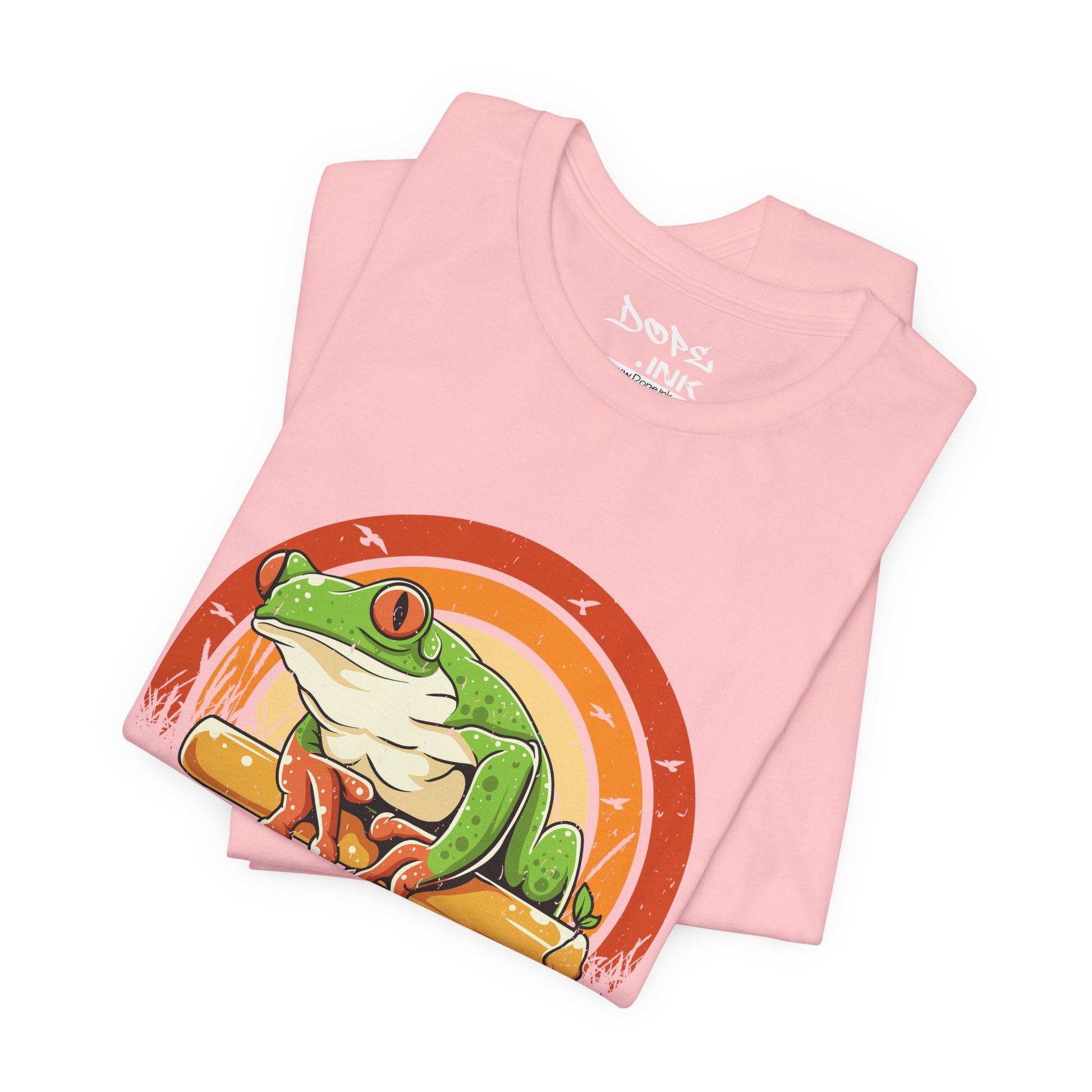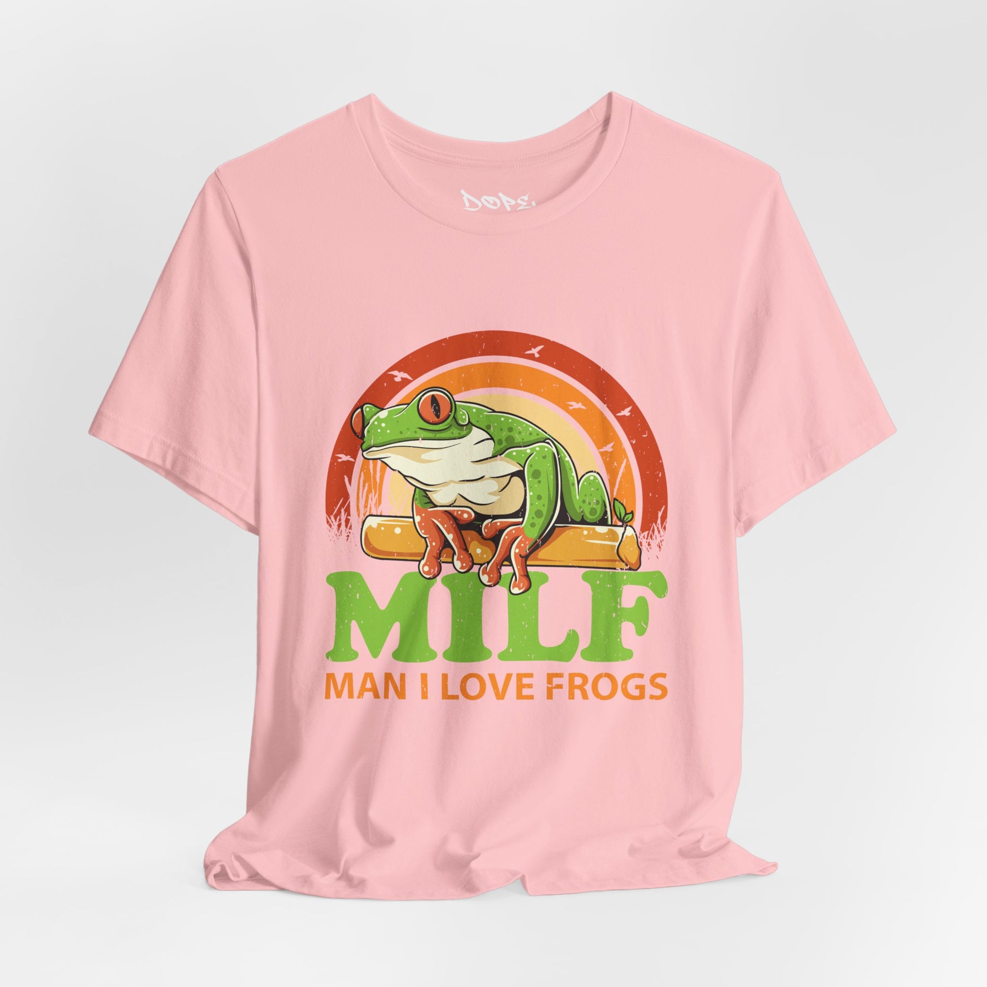 Hop to it with our "MILF: Man I Love Frogs" Streetwear from Dope.Ink! This premium unisex short-sleeve piece features a chill tree frog perched on a branch against a retro sunset rainbow, boldly declaring "MILF MAN I LOVE FROGS"—perfect for amphibian obsessives, nature weirdos, meme lords, or anyone owning their quirky passion with zero shame on pond visits, hikes, frog-spotting missions, or everyday ribbit energy.
