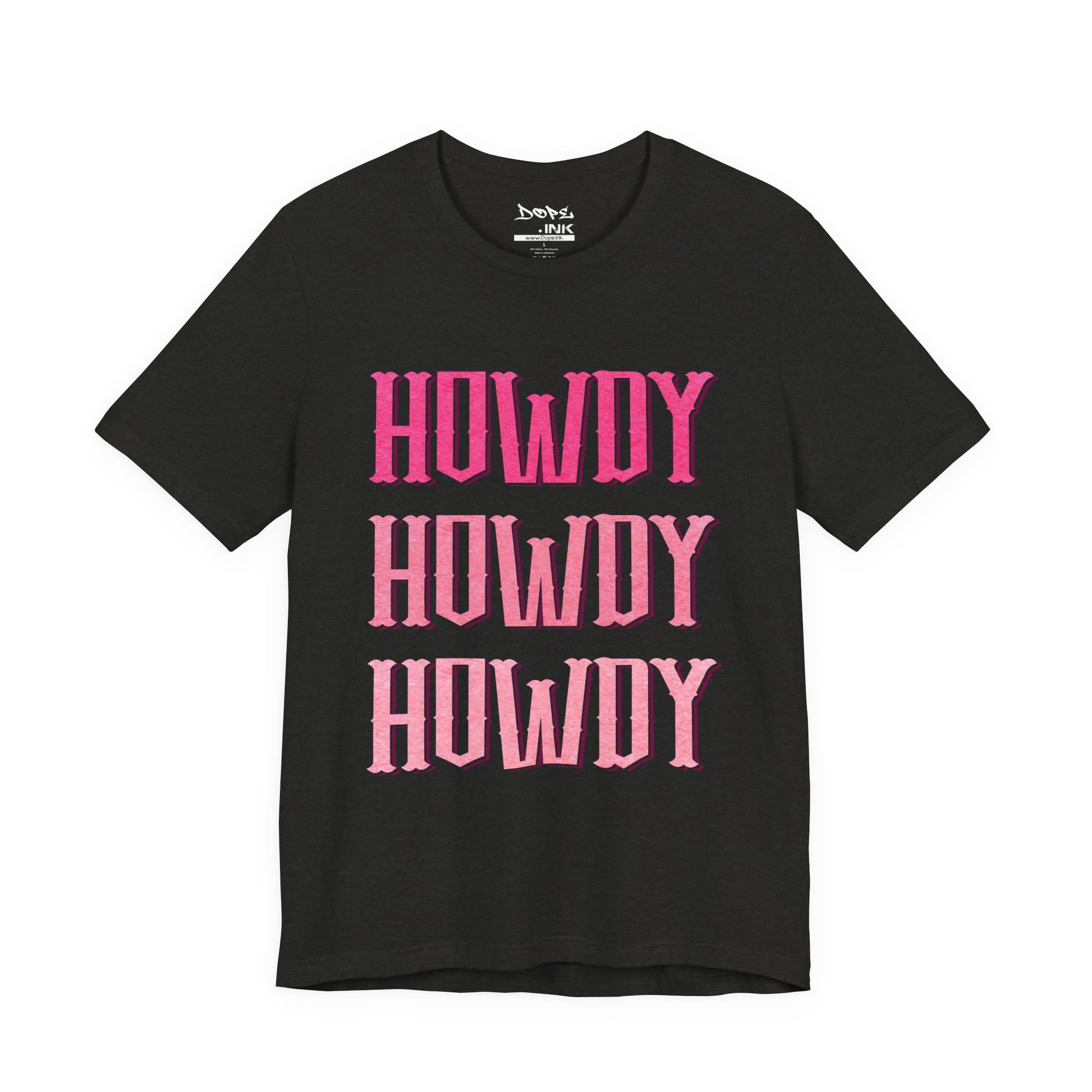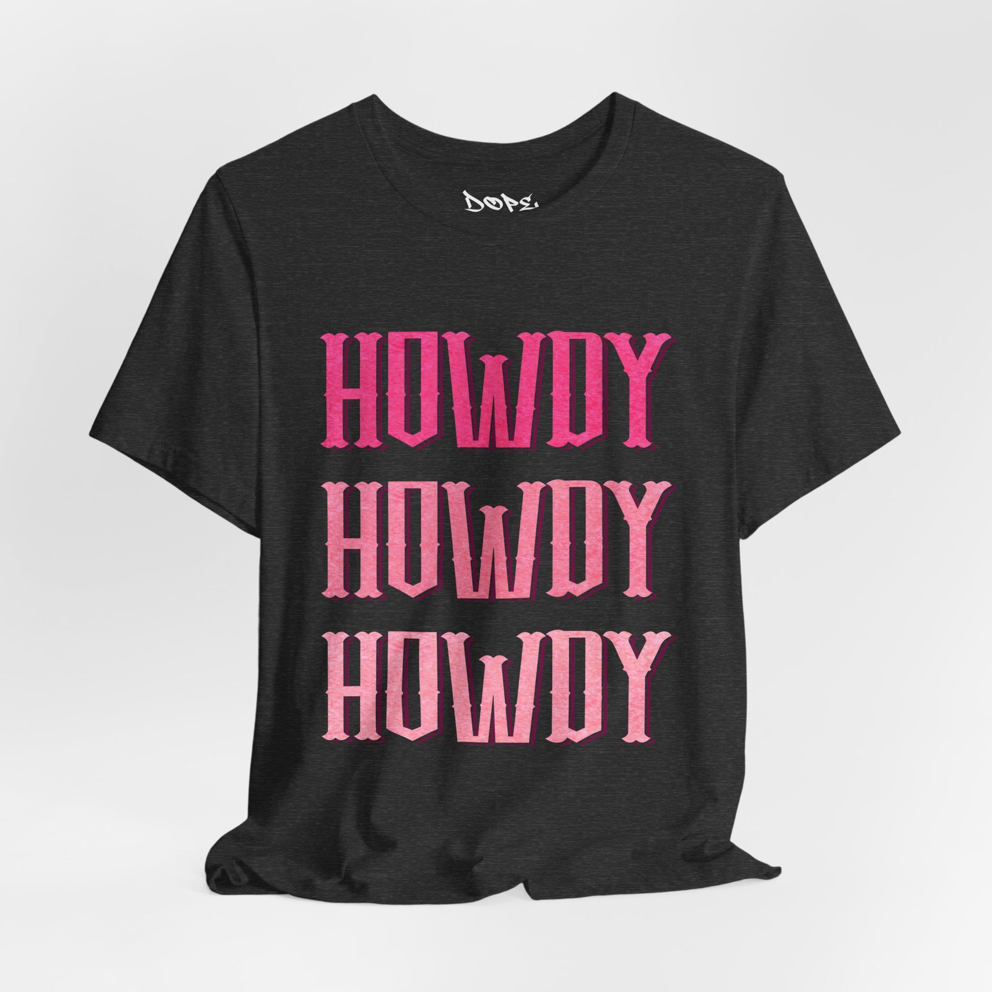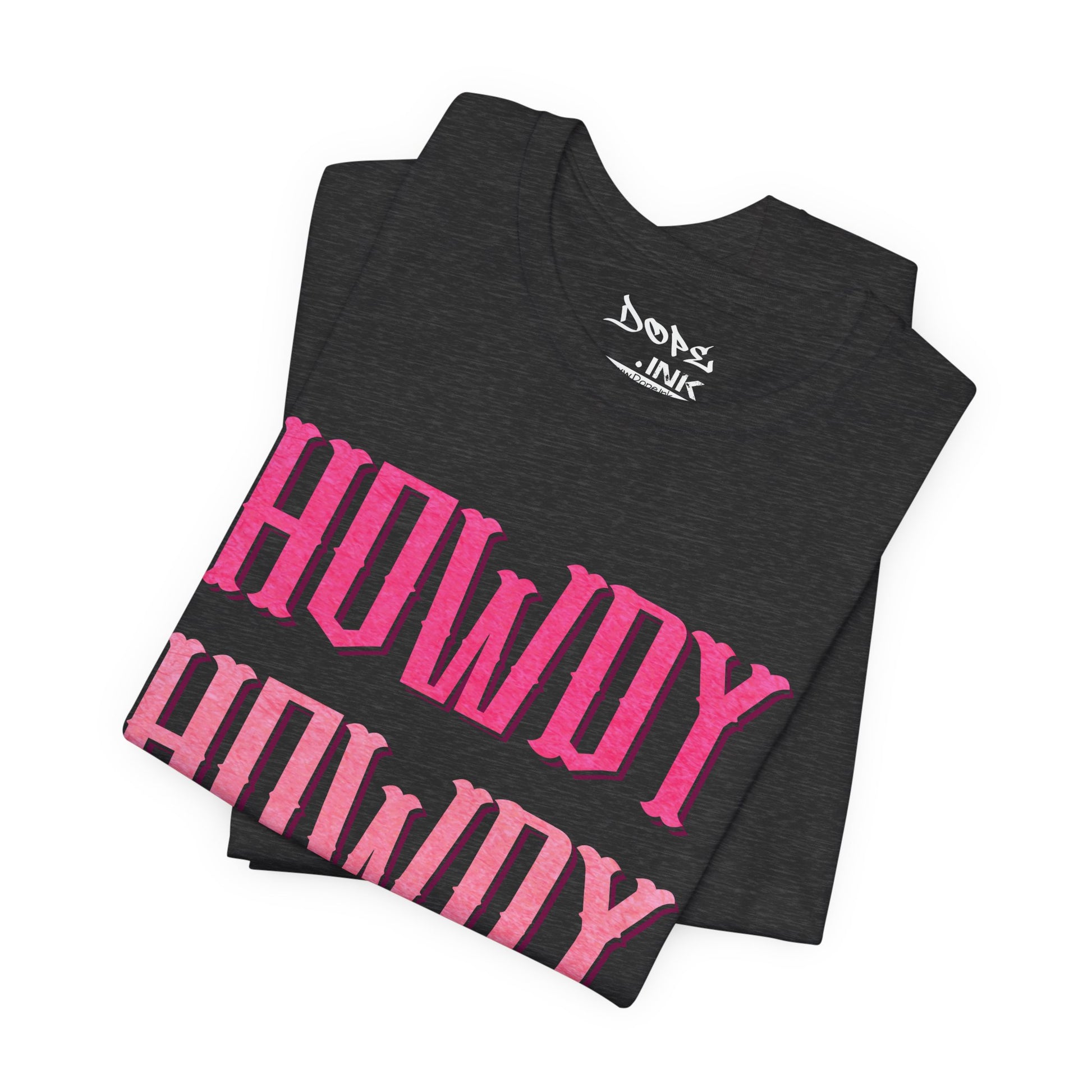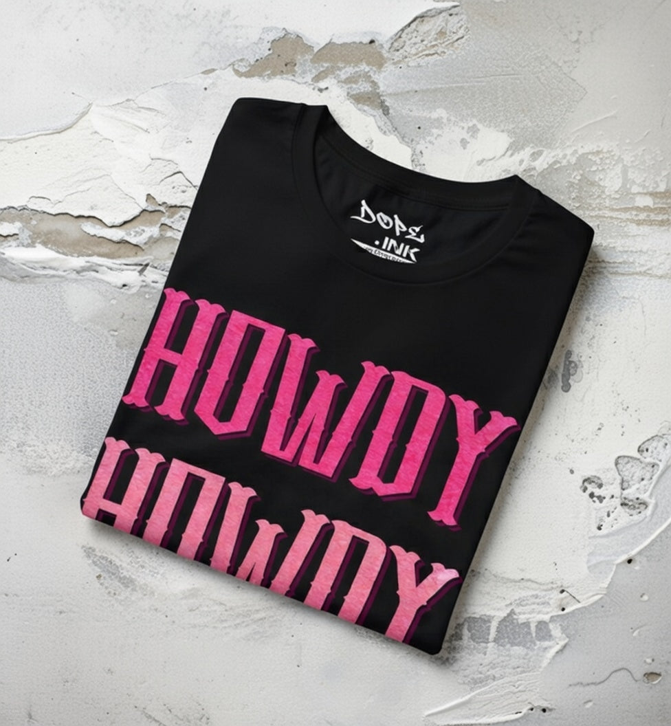 Yeehaw in pink with our "Triple Howdy" Streetwear from Dope.Ink! This premium unisex short-sleeve piece stacks bold, glittery pink "HOWDY" three times in vintage Western lettering—pure cowgirl sass, rodeo flair, and unapologetic Southern charm for line-dancing queens, country rebels, festival cowpokes, or anyone greeting the world with extra sparkle and attitude on concerts, bar crawls, or sunny trail rides.