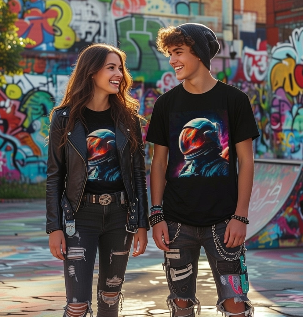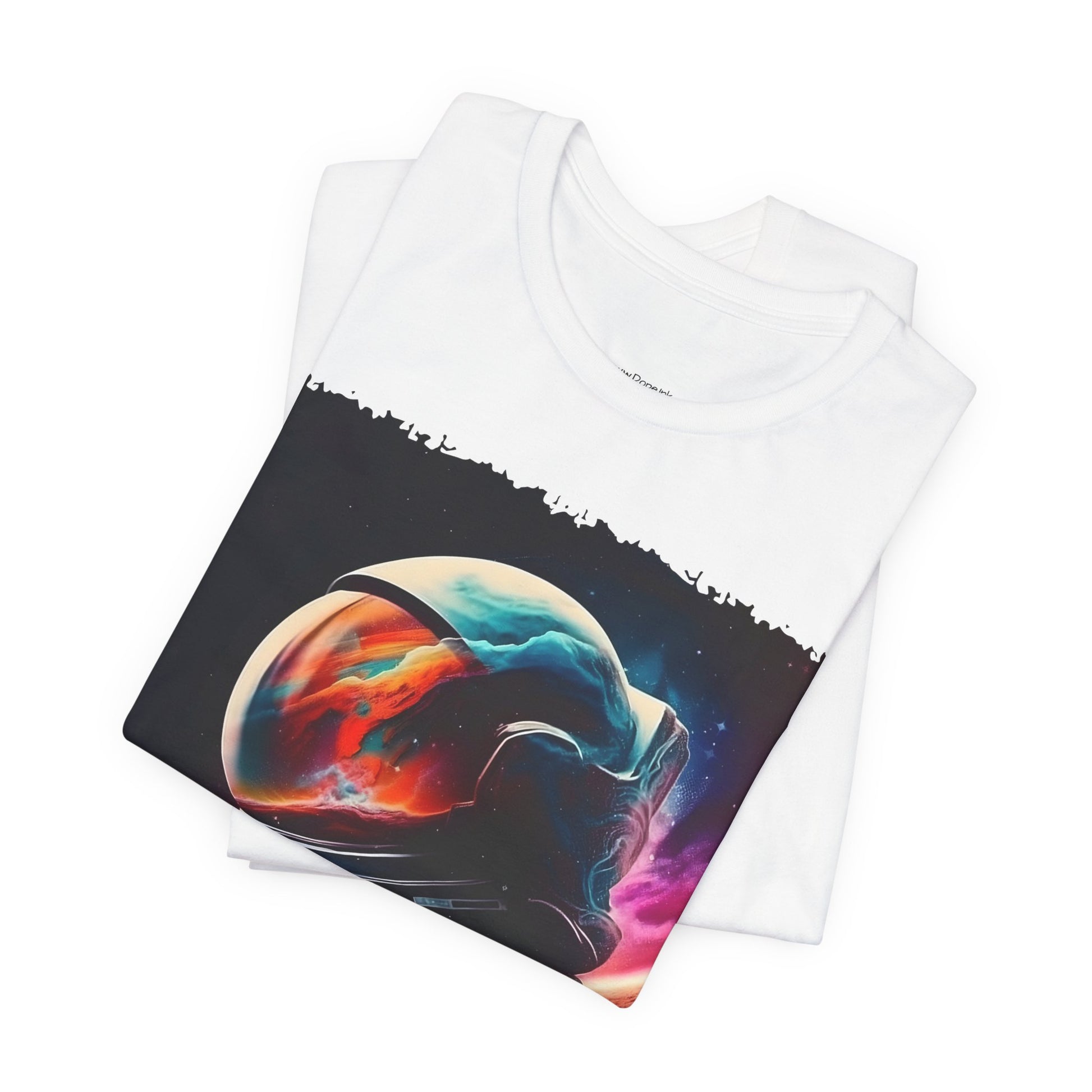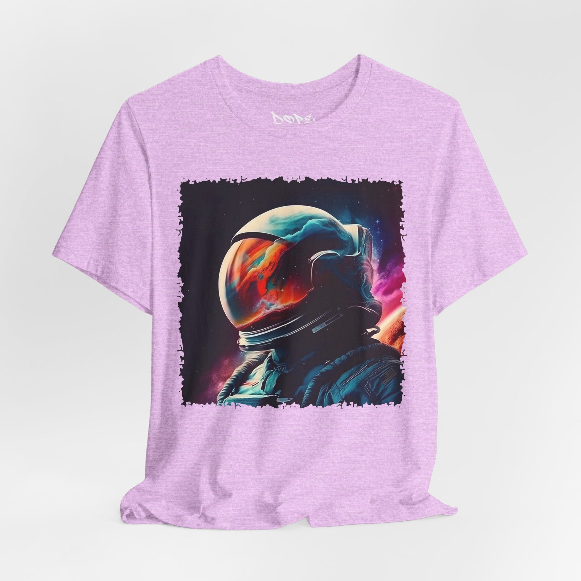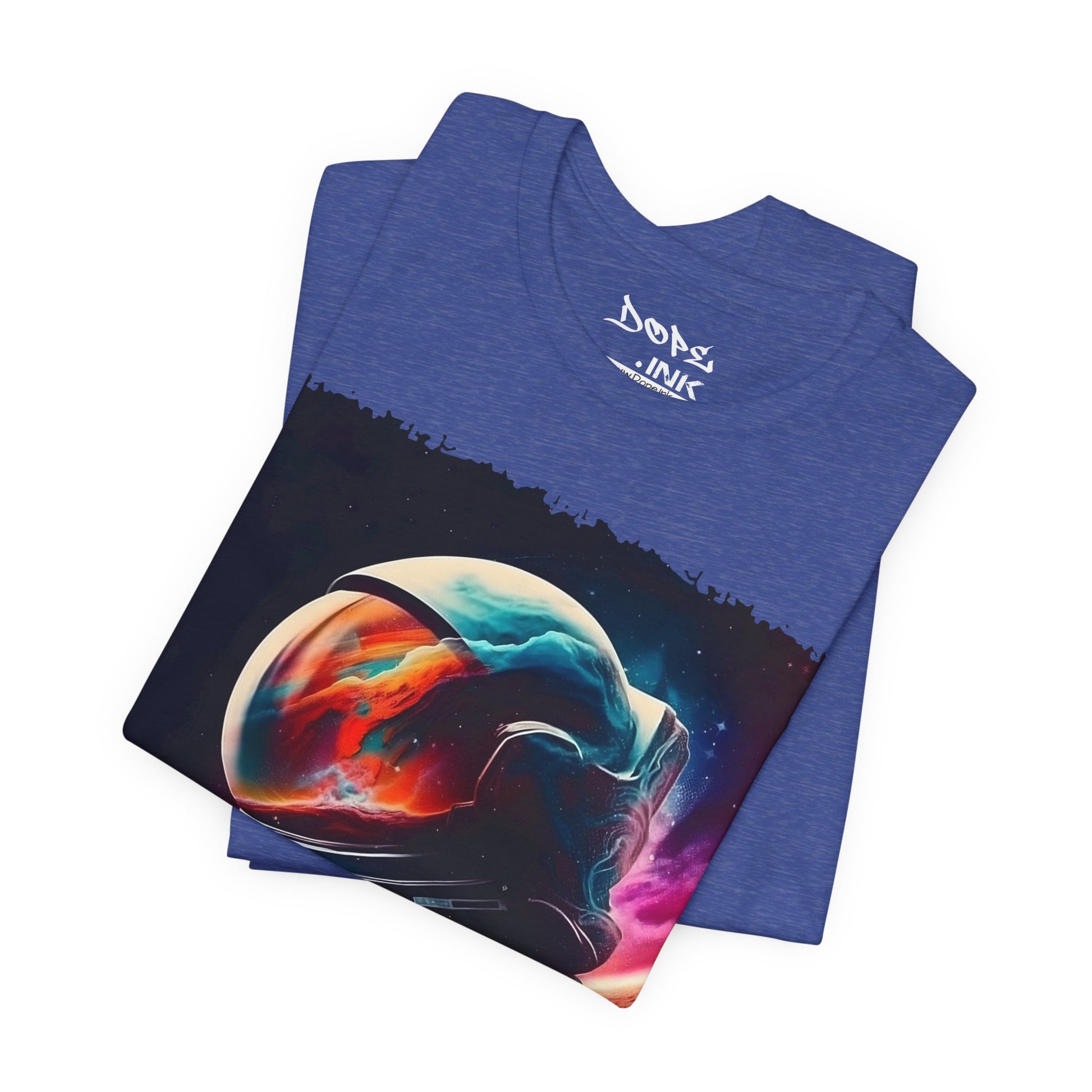 Chill into the cosmos with our "Lost in the Cosmos" streetwear from Dope.Ink! This black unisex jersey short-sleeve t-shirt showcases a striking astronaut in deep space, helmet reflecting a swirling nebula of fiery oranges, blues, and purples against a starry void—evoking mystery, exploration, and that revolutionary edge for dreamers pushing boundaries. Ideal for space aficionados, urban explorers, or anyone channeling interstellar rebellion in their daily grind, from city streets to late-night vibes or activist rallies.