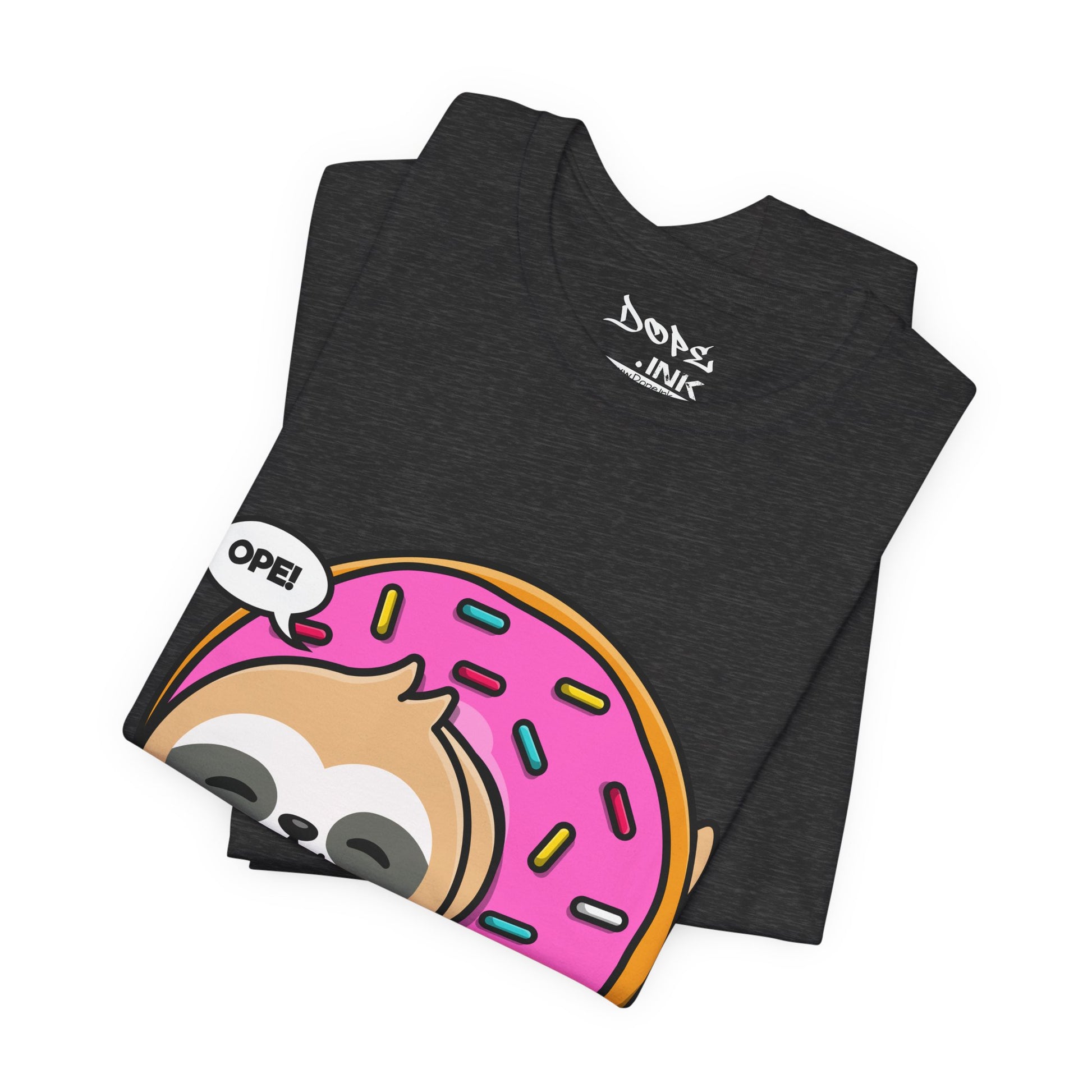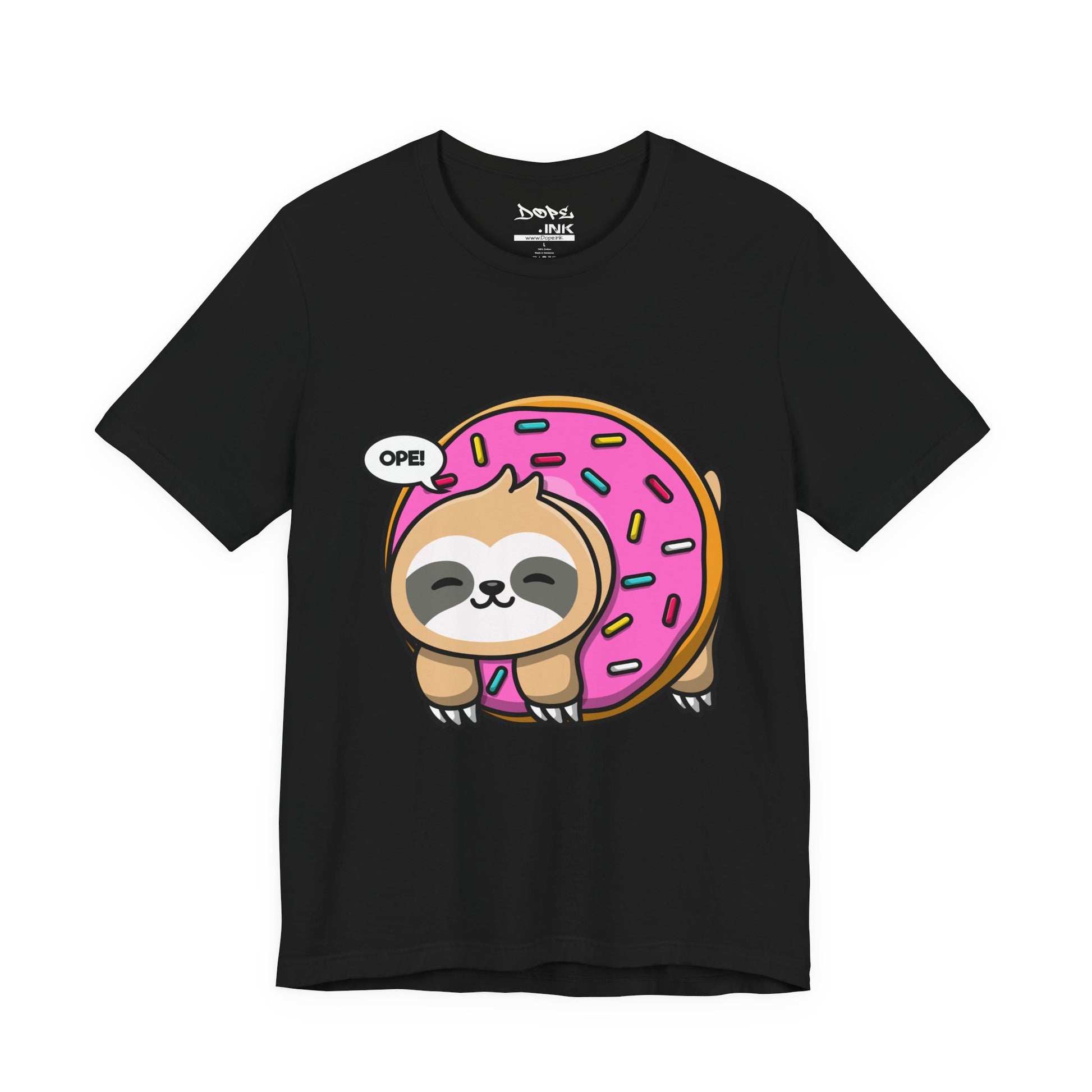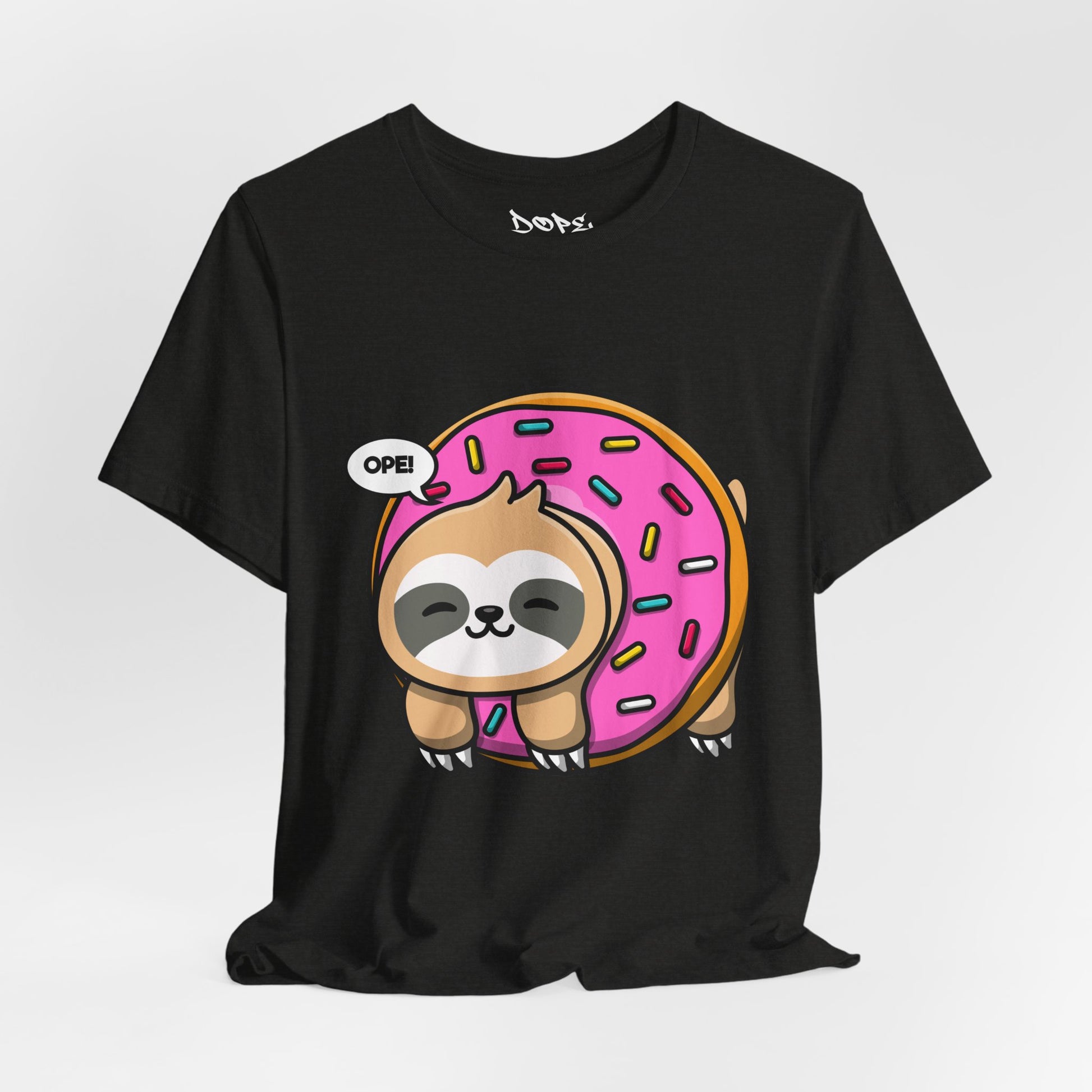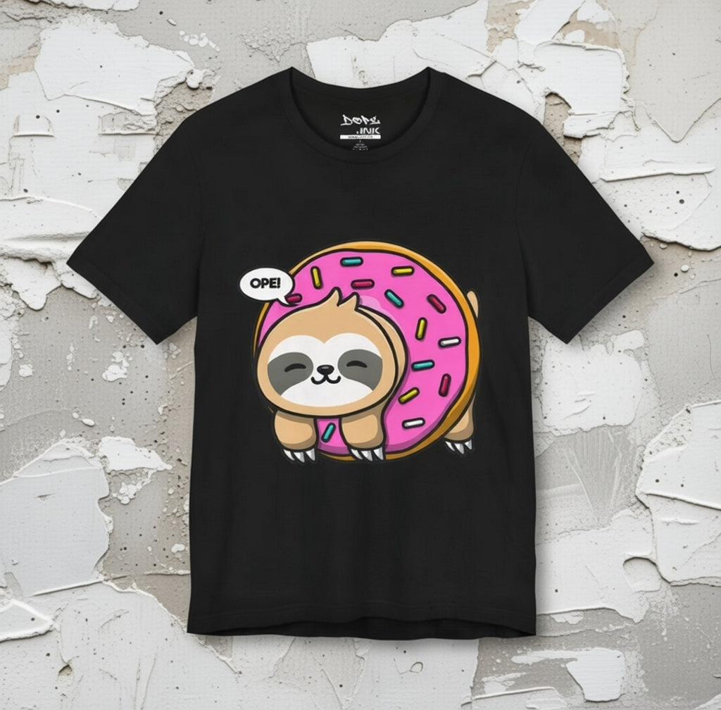 Chill at max speed with our "Midewestern Oopsie" Streetwear from Dope.Ink! This premium black unisex short-sleeve piece features an adorably lazy sloth hugging a giant pink-frosted donut with sprinkles, complete with a cheeky "OPE!" speech bubble—pure relaxed rebellion for slow-living legends, sweet-tooth rebels, or anyone embracing that "no rush, just vibes" energy on lazy days, coffee runs, or whenever you're feeling extra unhurried.