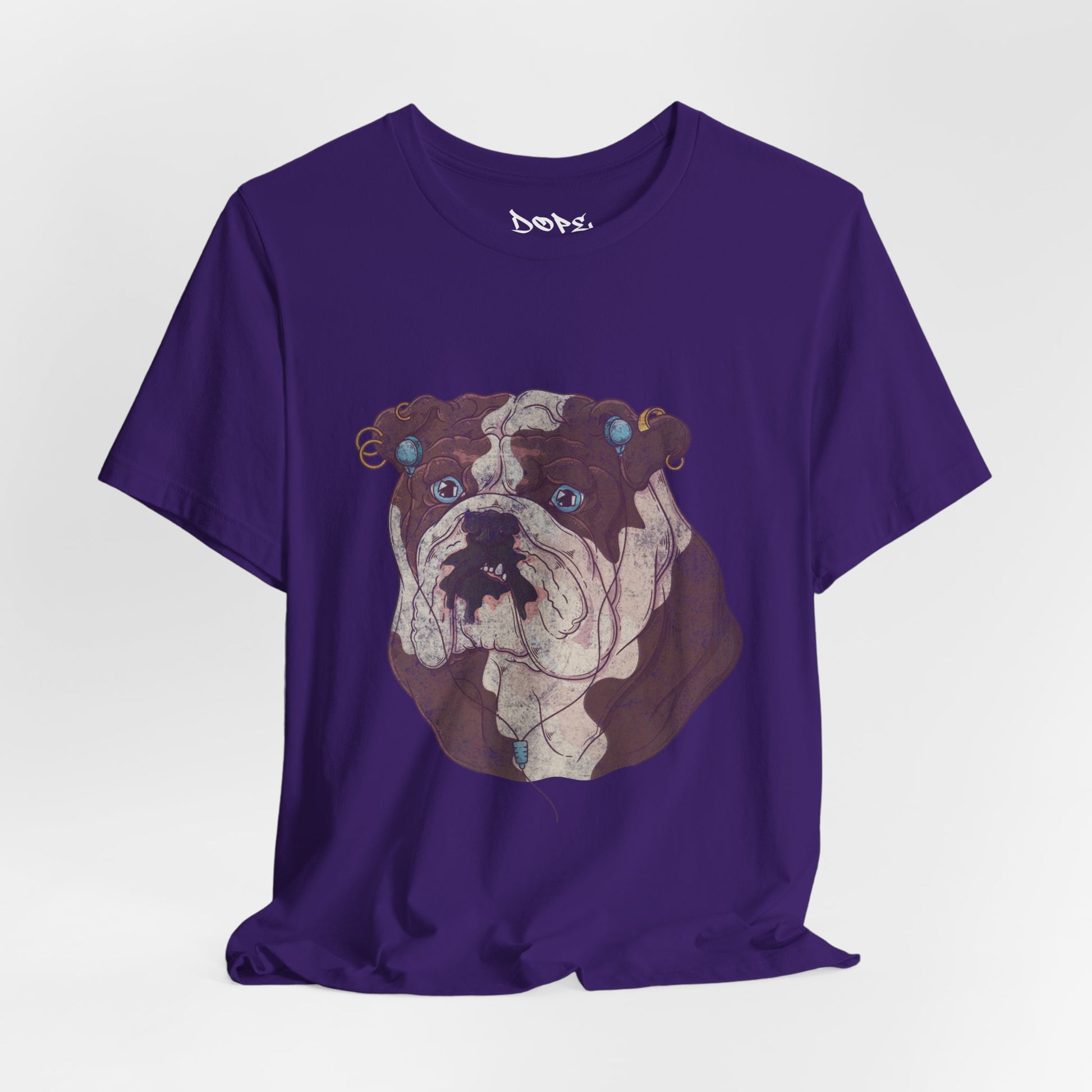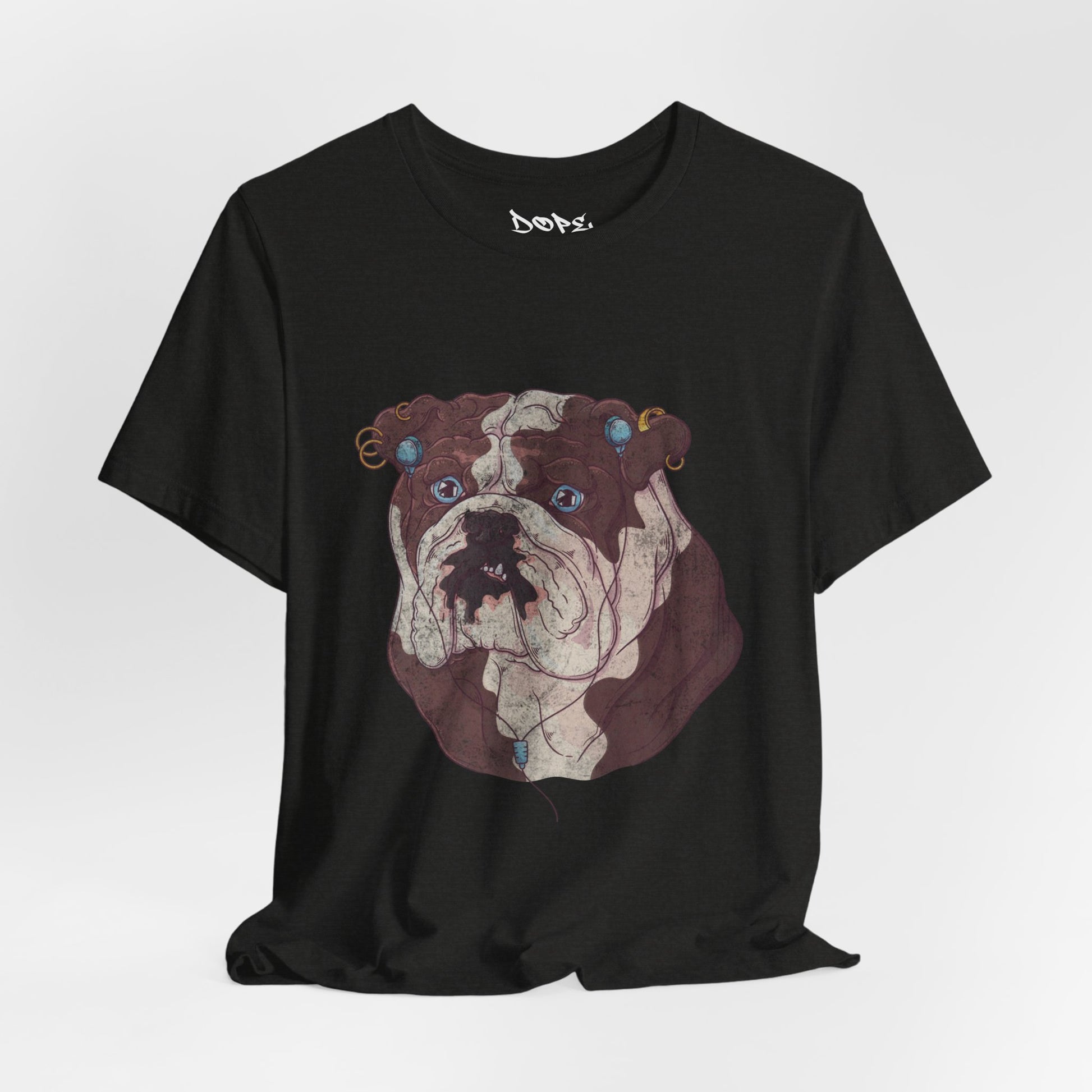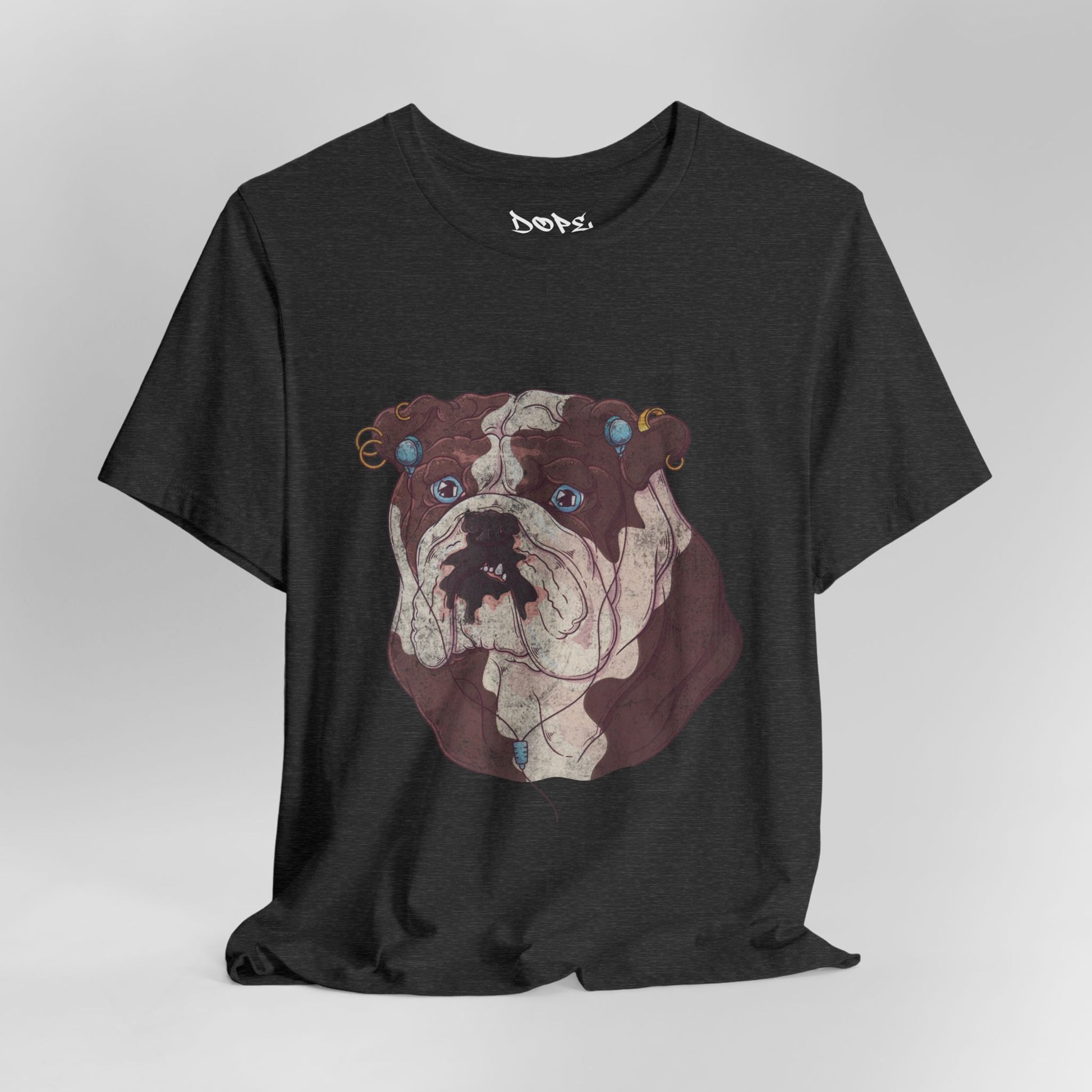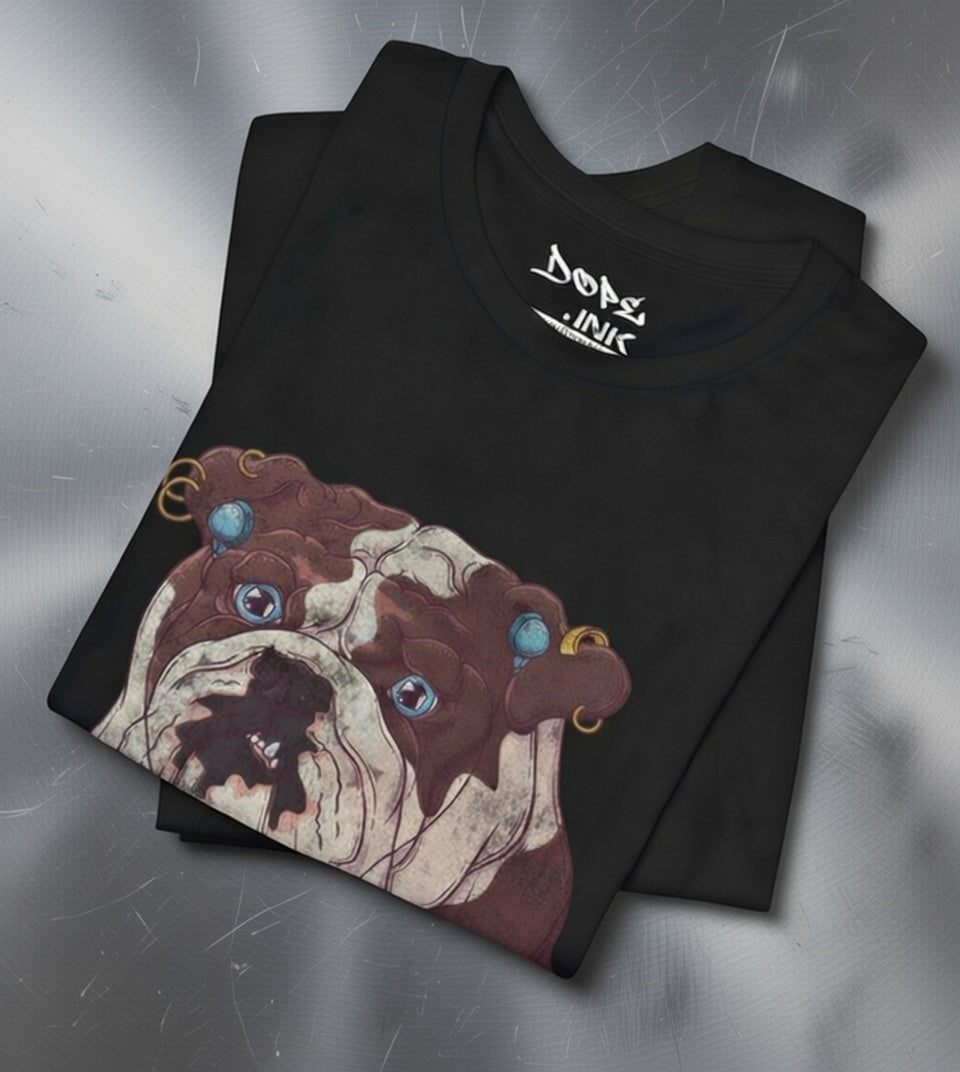 Serve looks with our "My Spirit Animal" Streetwear from Dope.Ink! This premium unisex short-sleeve piece drops a gritty, vintage-style bulldog face decked out in turquoise earrings, gauges, and a nose ring, those big sad eyes staring straight into your soul—pure rebellious pup energy for dog parents, alt pet lovers, tattoo crowd, or anyone owning that "too cool for rules" vibe on walks, hangs, or when you're just feeling extra pierced and pouty.