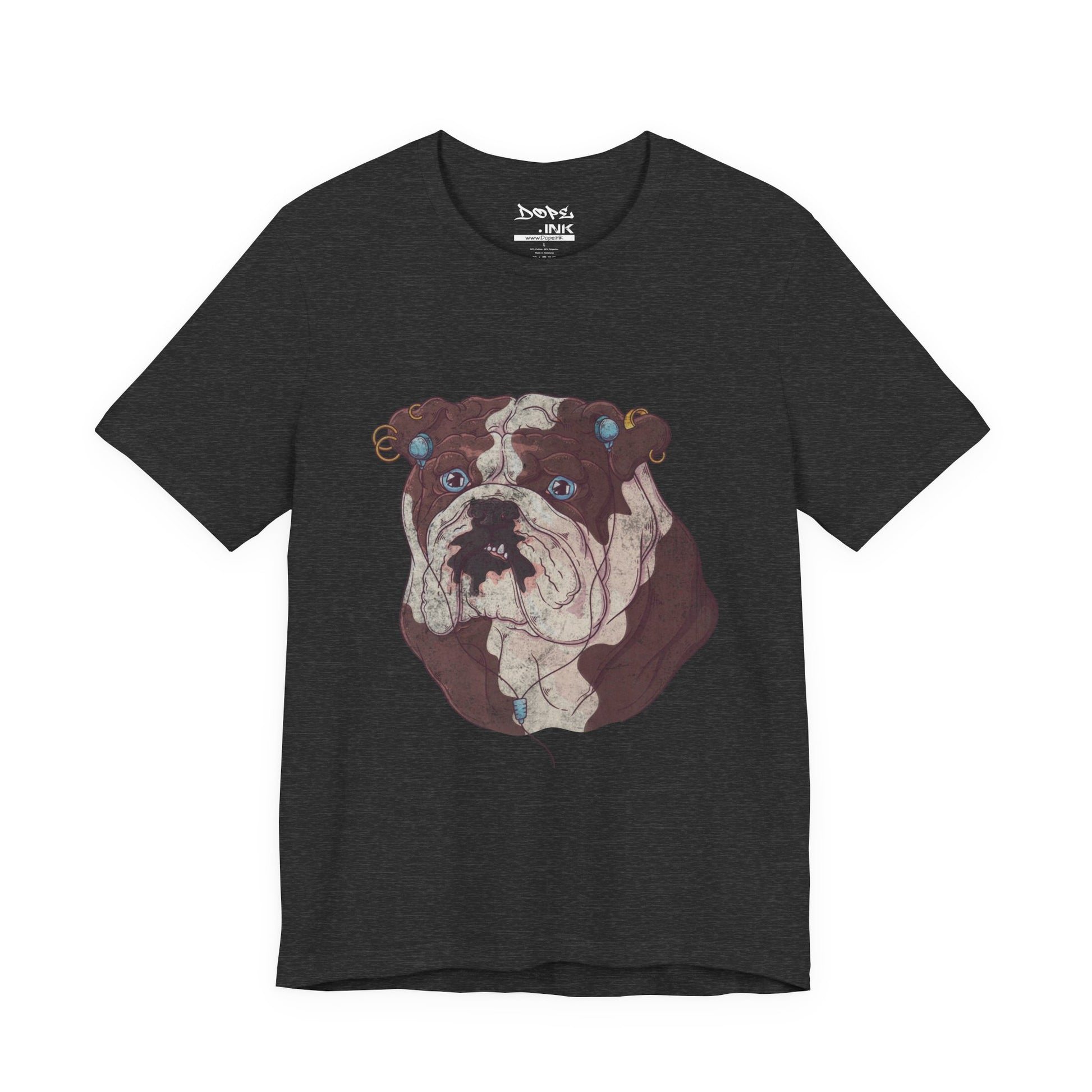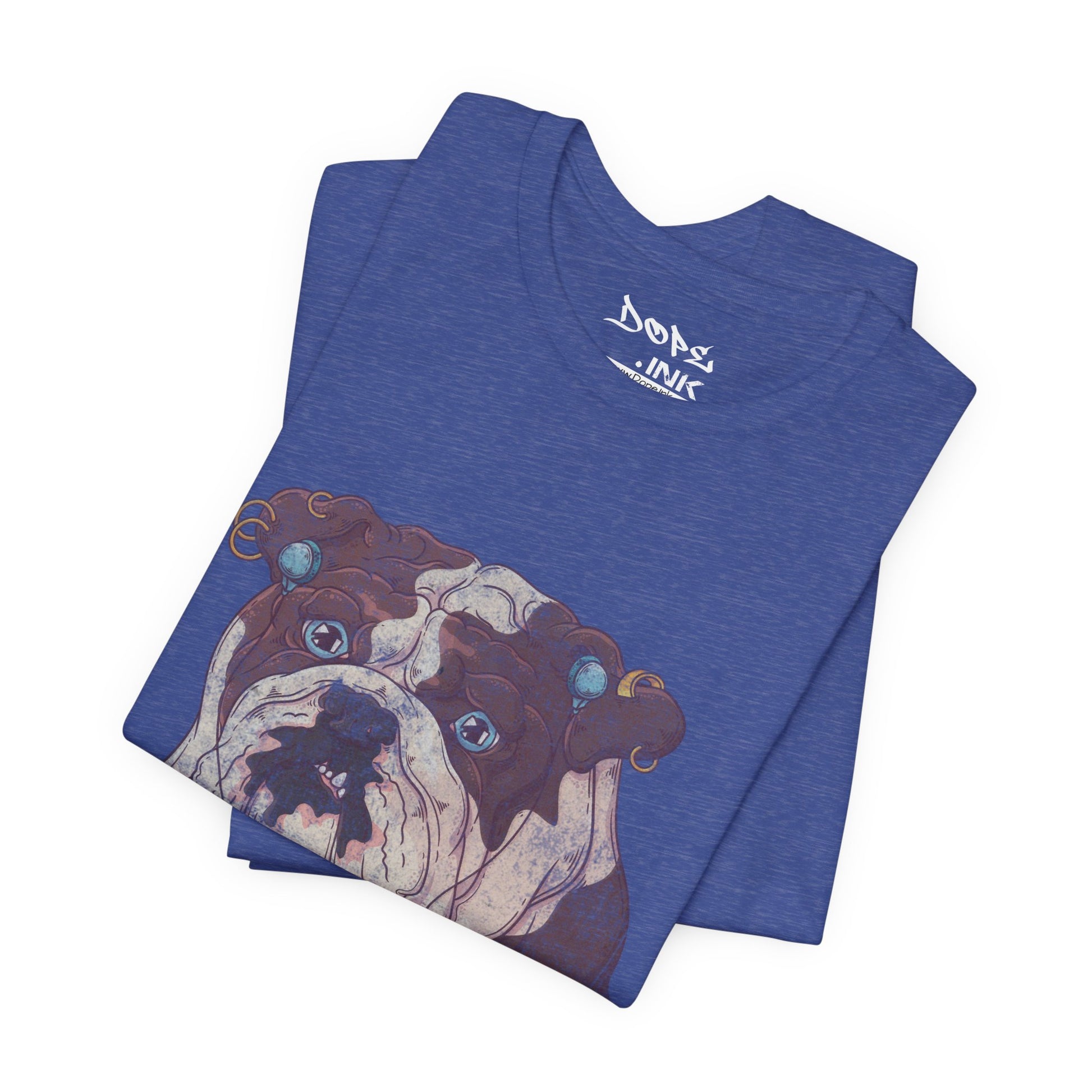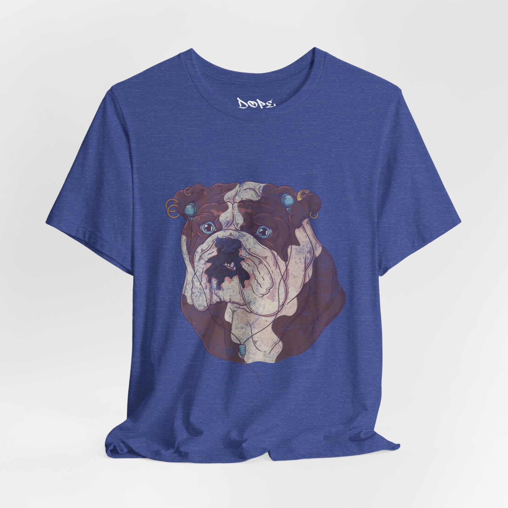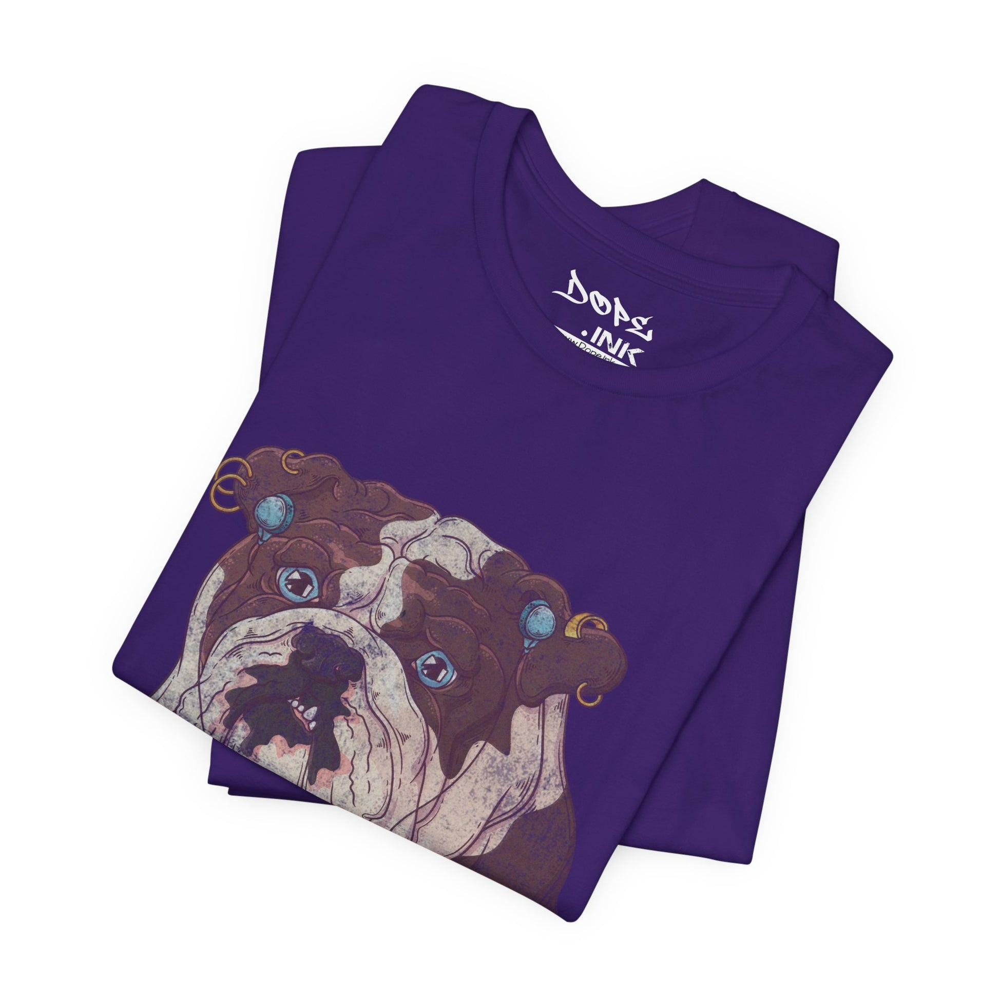 Serve looks with our "My Spirit Animal" Streetwear from Dope.Ink! This premium unisex short-sleeve piece drops a gritty, vintage-style bulldog face decked out in turquoise earrings, gauges, and a nose ring, those big sad eyes staring straight into your soul—pure rebellious pup energy for dog parents, alt pet lovers, tattoo crowd, or anyone owning that "too cool for rules" vibe on walks, hangs, or when you're just feeling extra pierced and pouty.