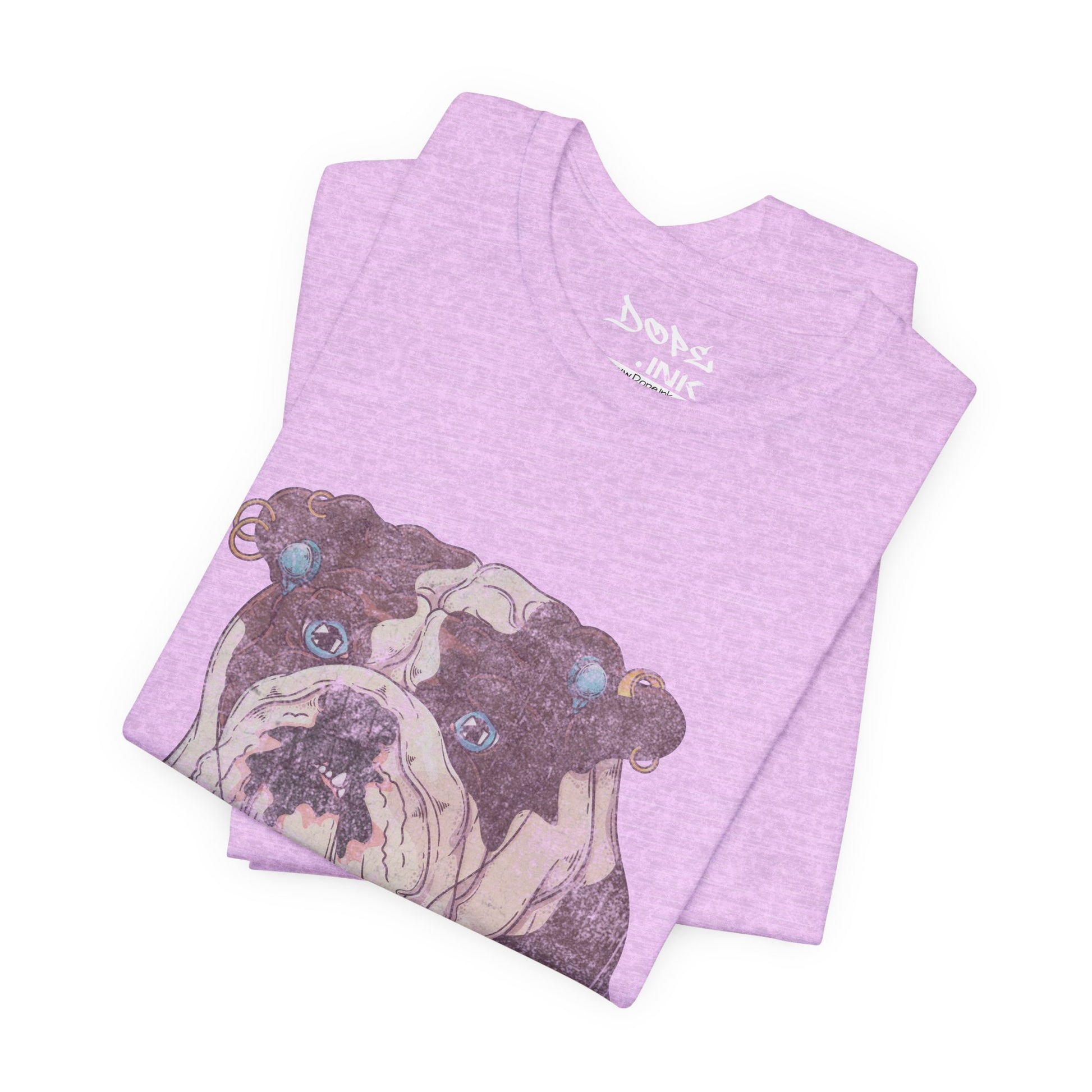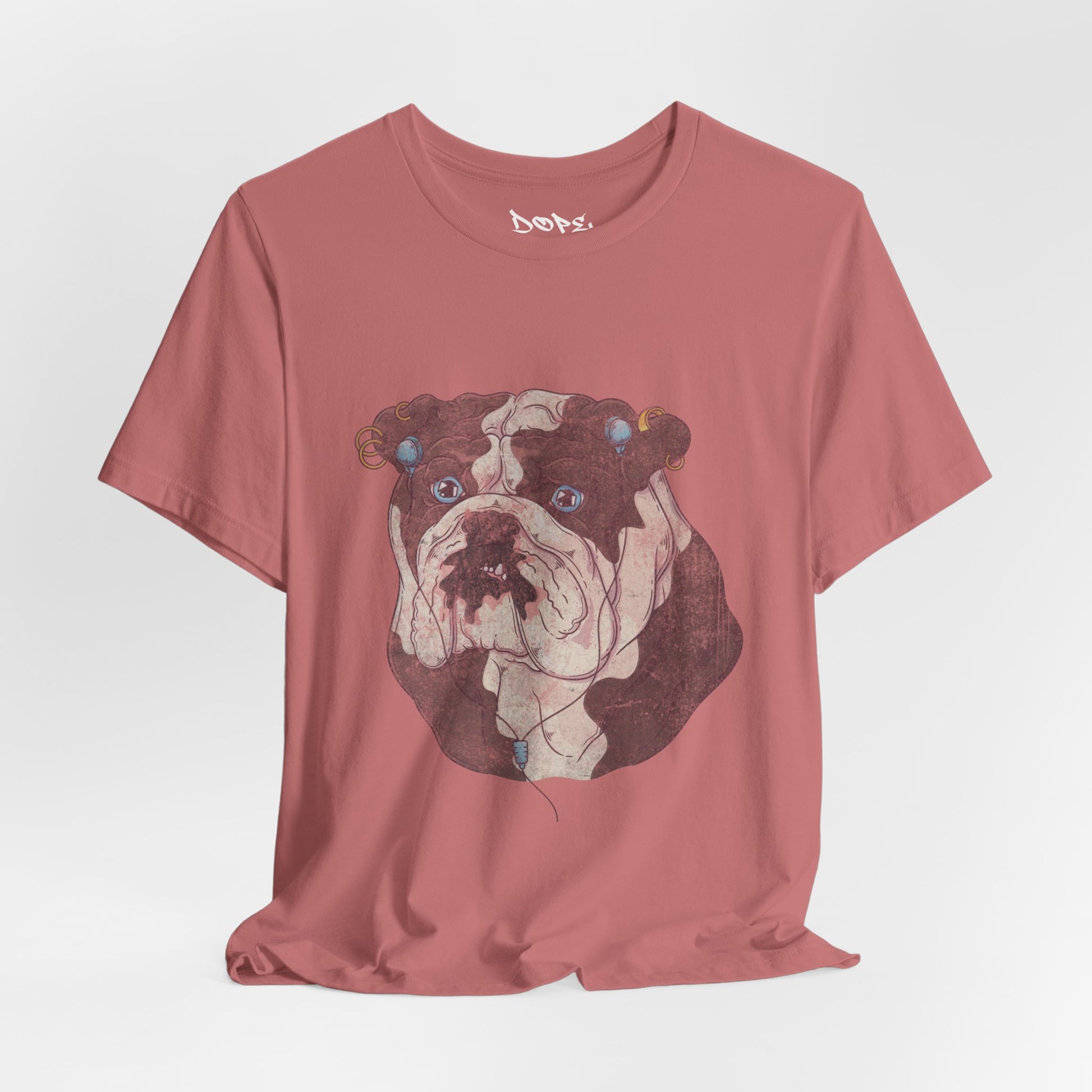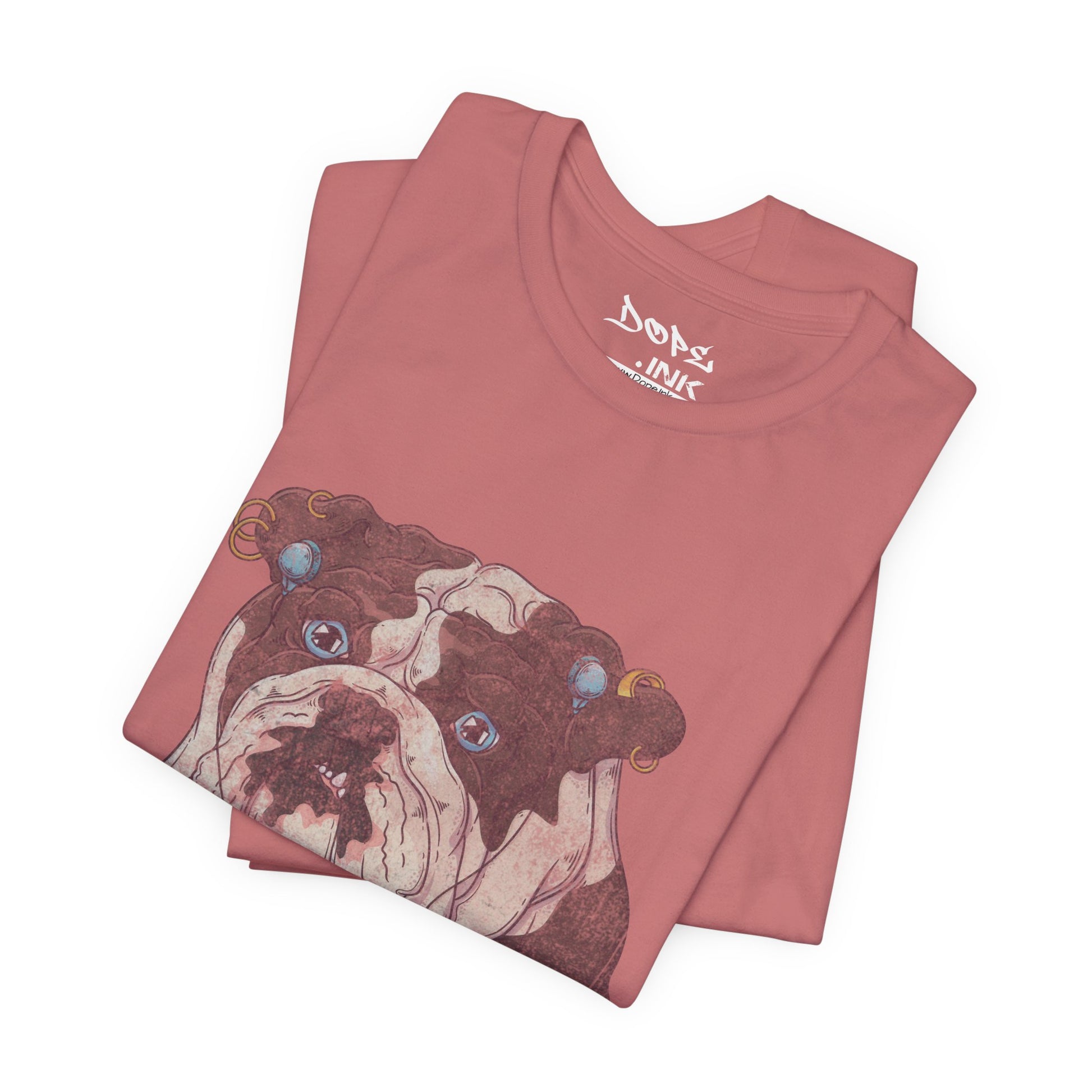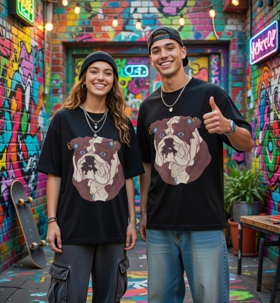 Serve looks with our "My Spirit Animal" Streetwear from Dope.Ink! This premium unisex short-sleeve piece drops a gritty, vintage-style bulldog face decked out in turquoise earrings, gauges, and a nose ring, those big sad eyes staring straight into your soul—pure rebellious pup energy for dog parents, alt pet lovers, tattoo crowd, or anyone owning that "too cool for rules" vibe on walks, hangs, or when you're just feeling extra pierced and pouty.