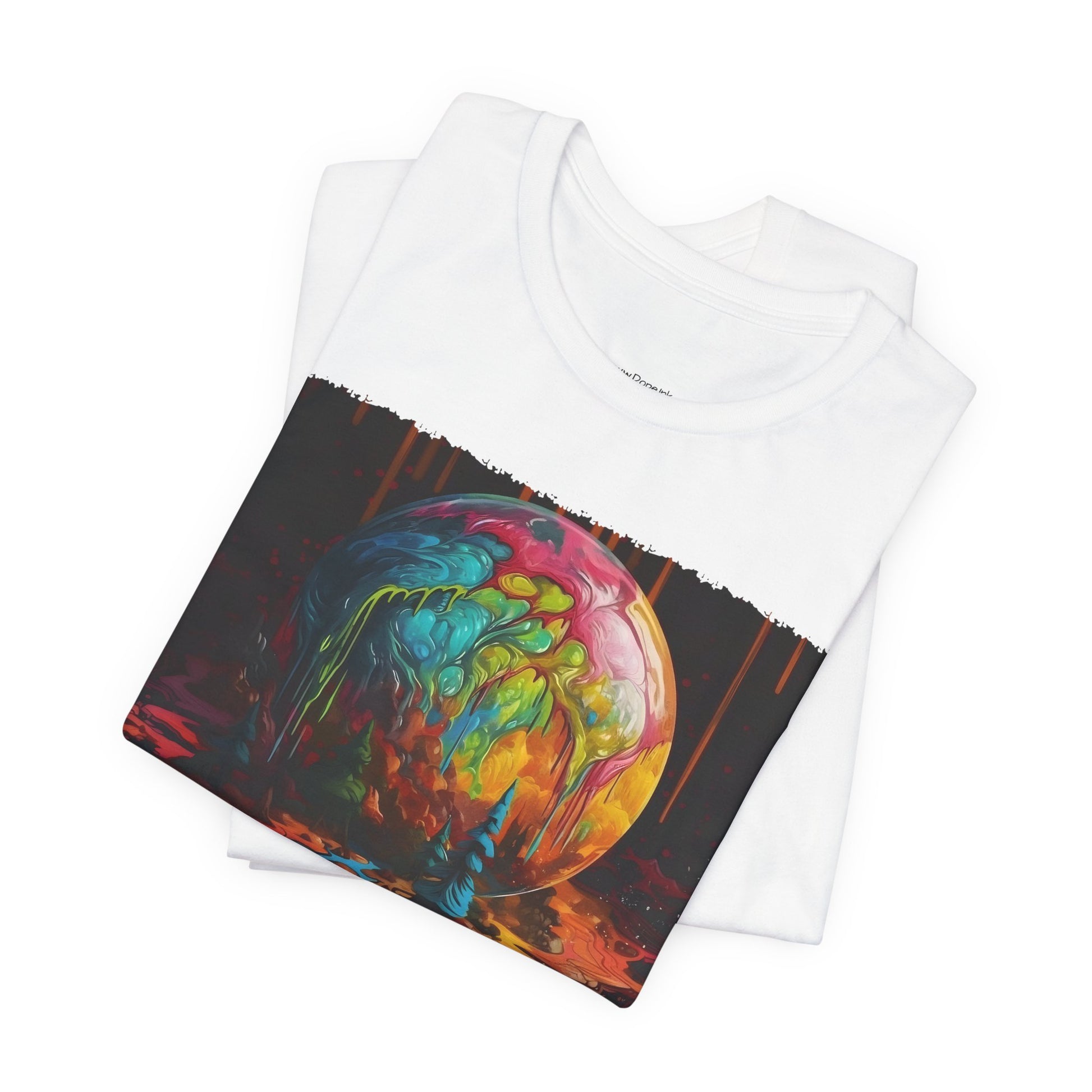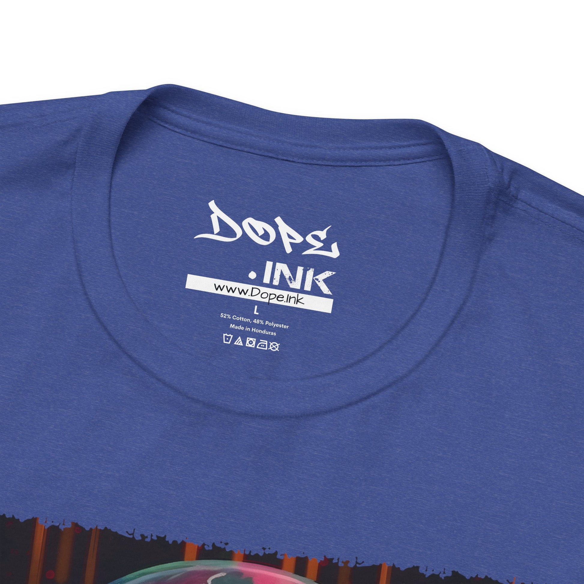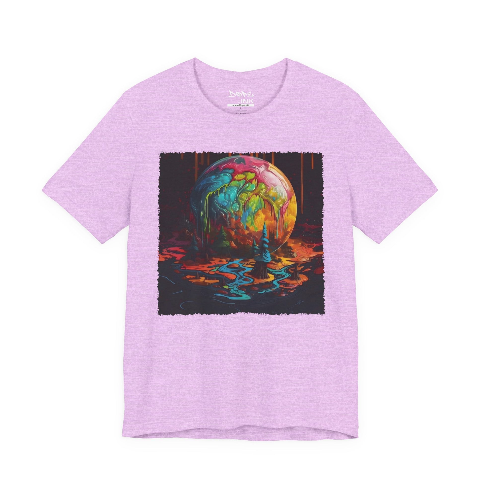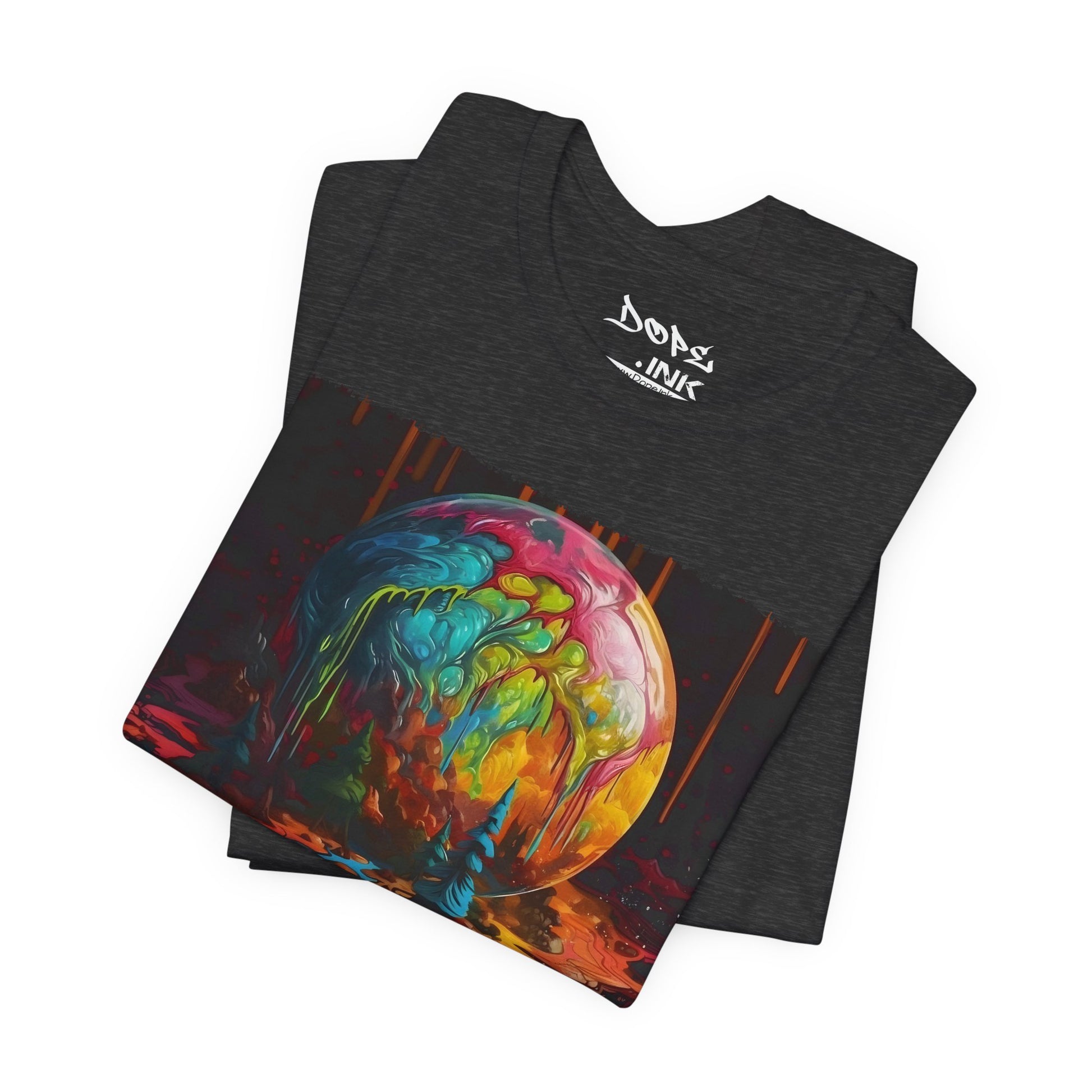 Melt into the surreal with our "Psychedelic Eclipse" Streetwear from Dope.Ink! This premium unisex short-sleeve piece showcases a massive, dripping orb of swirling neon colors—pink, teal, lime, orange, and electric blue—hovering above a warped alien landscape of melting trees and glowing pools. Pure psychedelic rebellion for trippy souls, festival wanderers, or anyone who wants to wear a portal to another dimension on the daily.