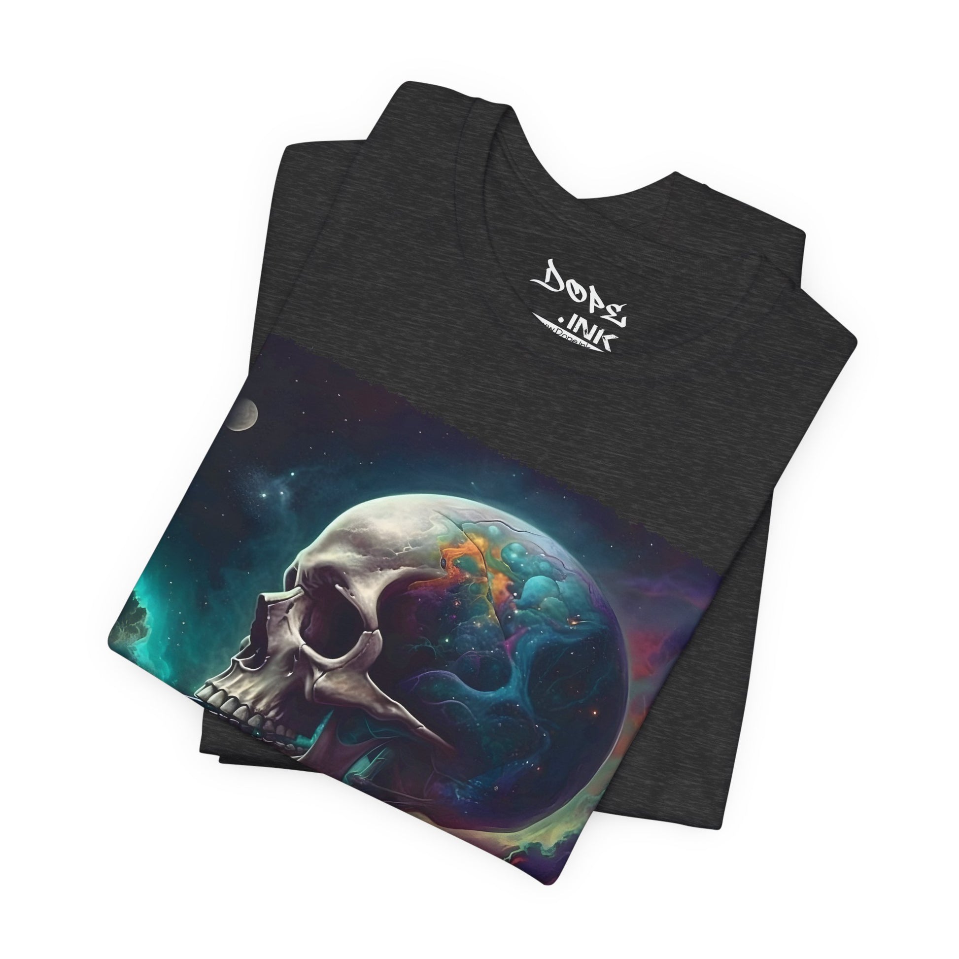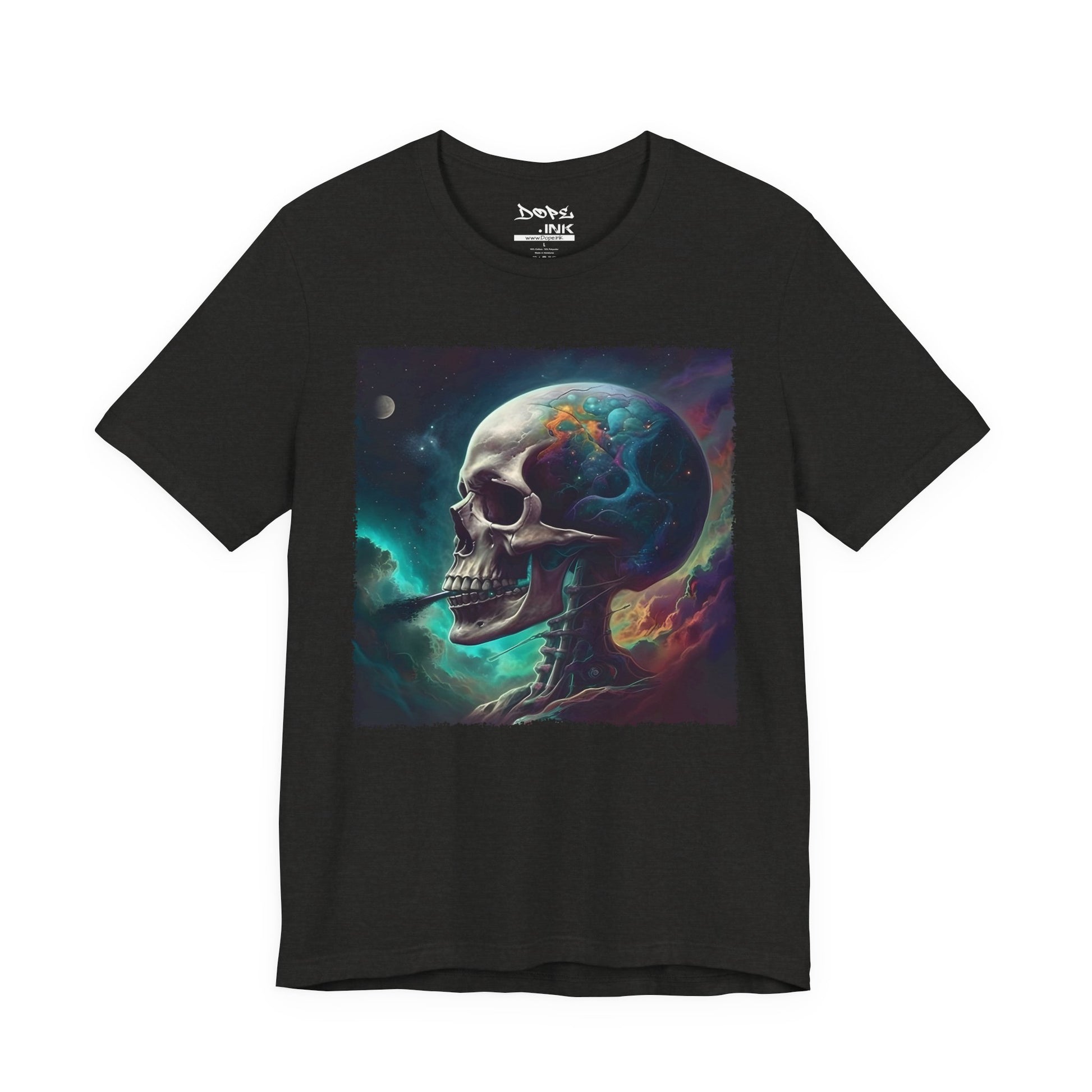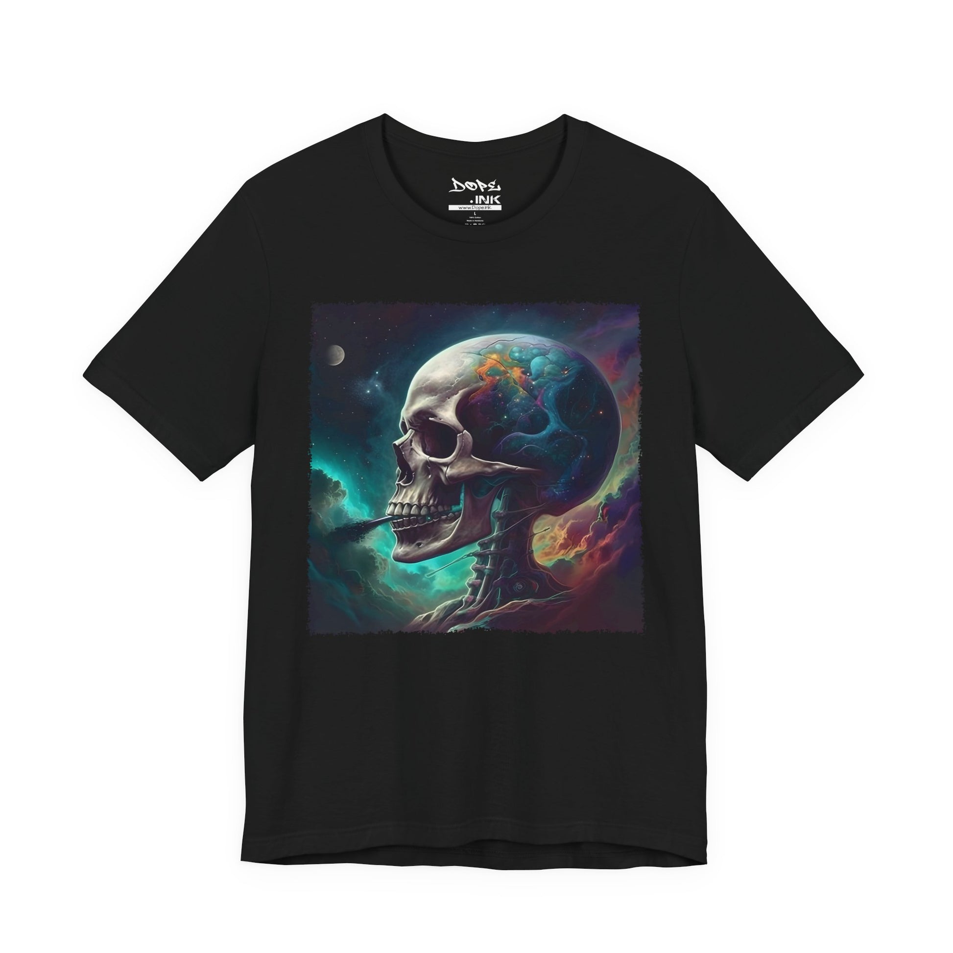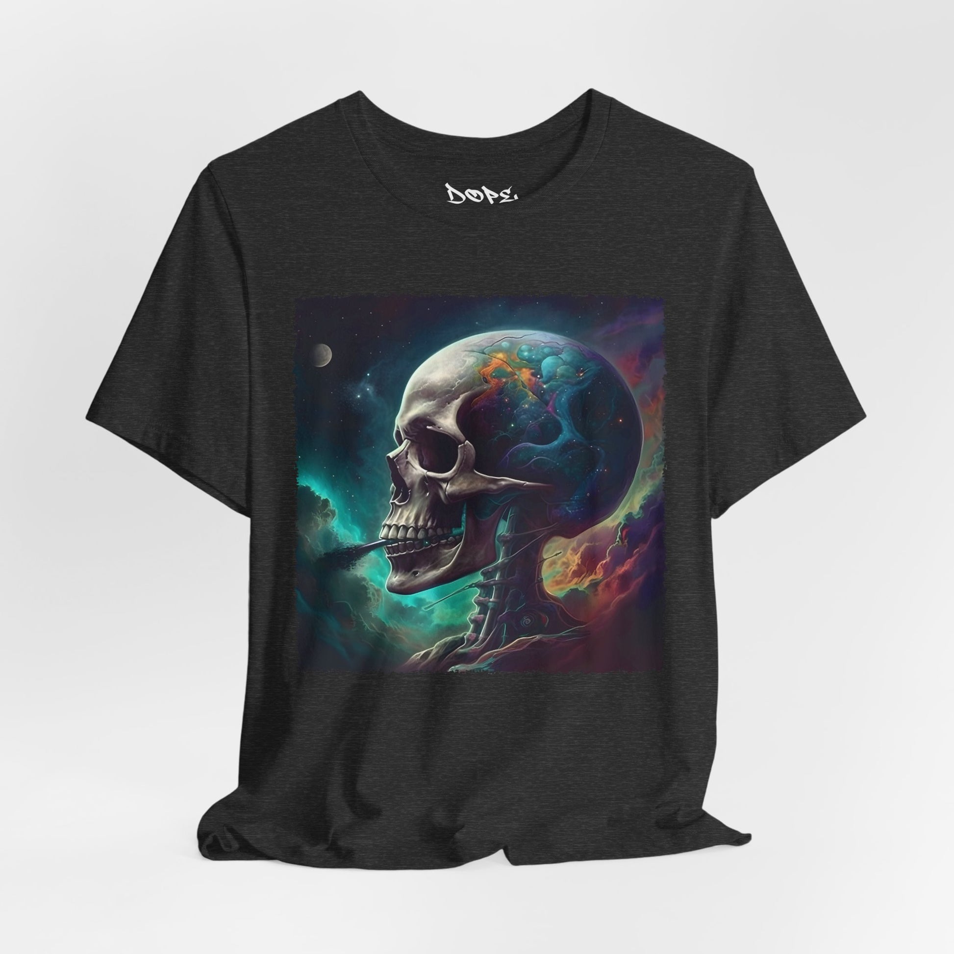 Embrace the eternal vibe with our "Reaper" Streetwear from Dope.Ink! This premium black unisex short-sleeve piece features a haunting skull exhaling smoke into a swirling cosmic nebula of vibrant teals, purples, oranges, and starry galaxies—blending mortality with infinite space for that ultimate edgy, revolutionary statement. Perfect for night owls, stargazers, deep thinkers, or anyone channeling cosmic energy on the streets, at concerts, or late-night adventures.