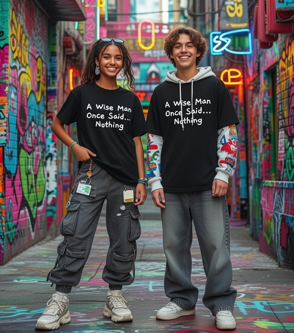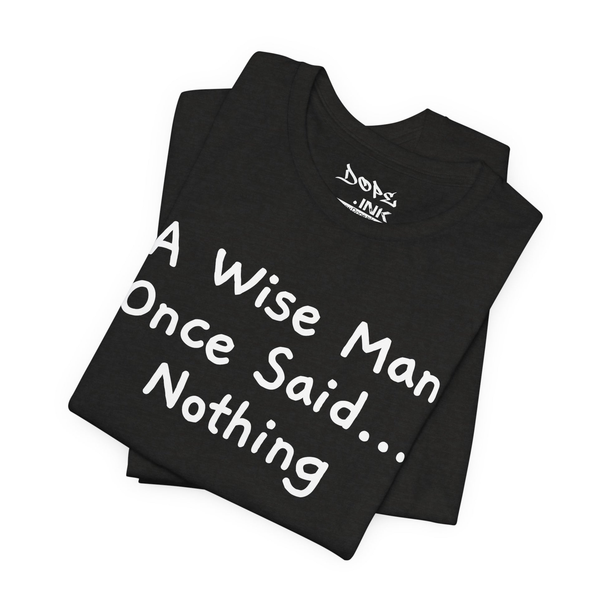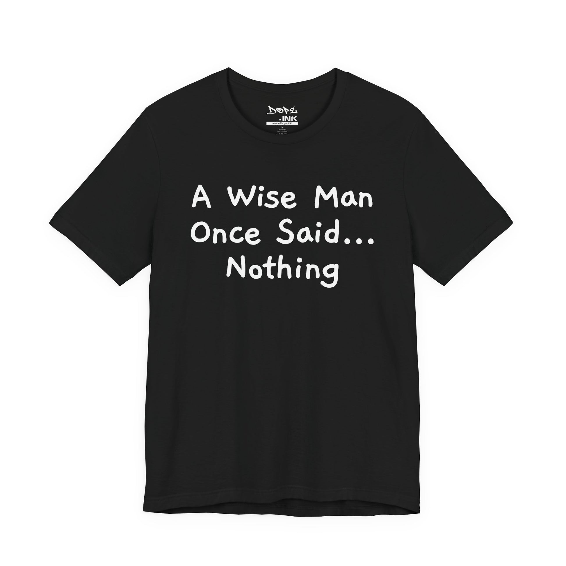 Embrace the power of silence with our "Wise Man" Streetwear from Dope.Ink! This premium unisex short-sleeve piece delivers the ultimate witty truth in playful white handwritten text: "A Wise Man Once Said... Nothing"—perfect for introverts, deep thinkers, quiet rebels, or anyone who knows sometimes the smartest move is to say zero on group chats, meetings, or when drama calls.