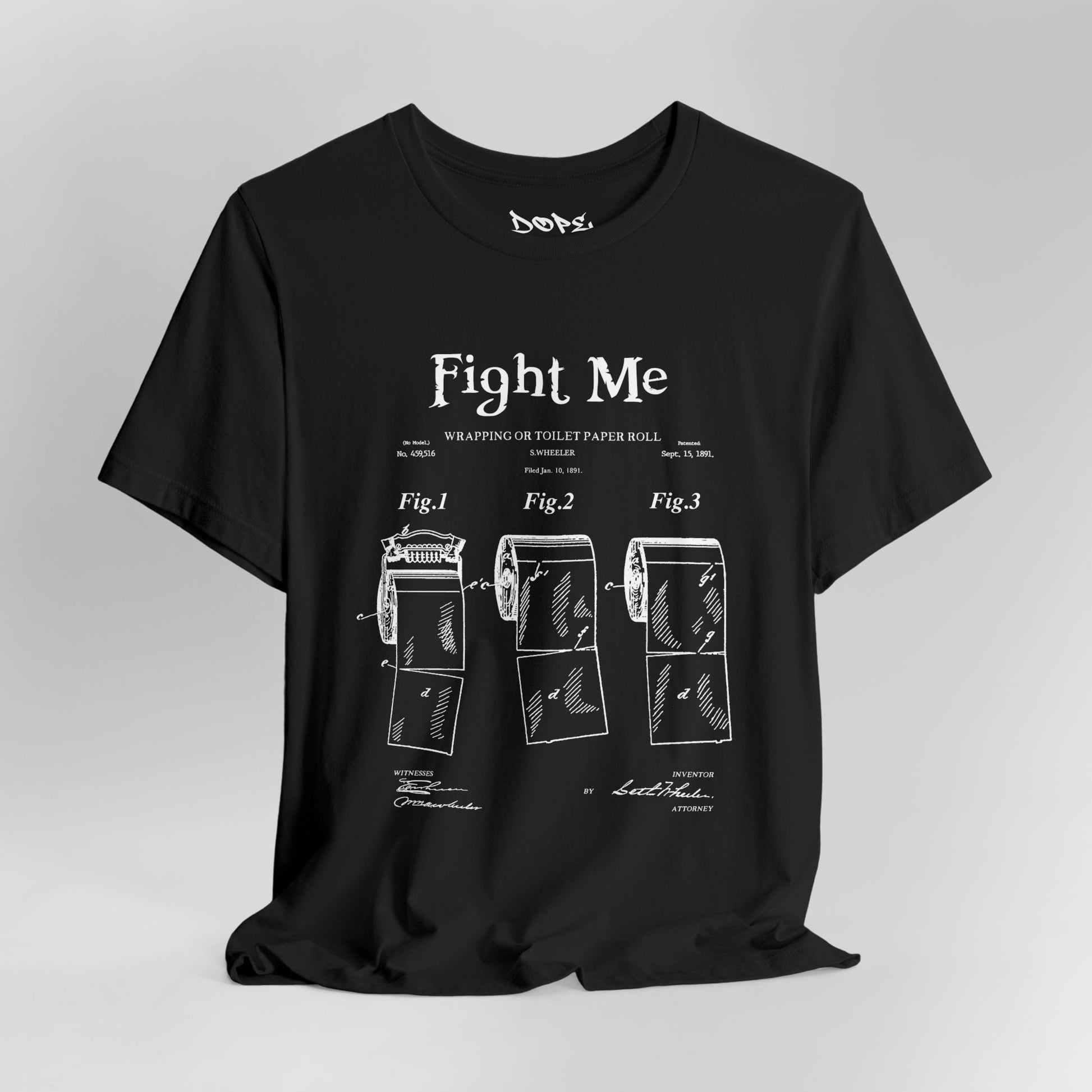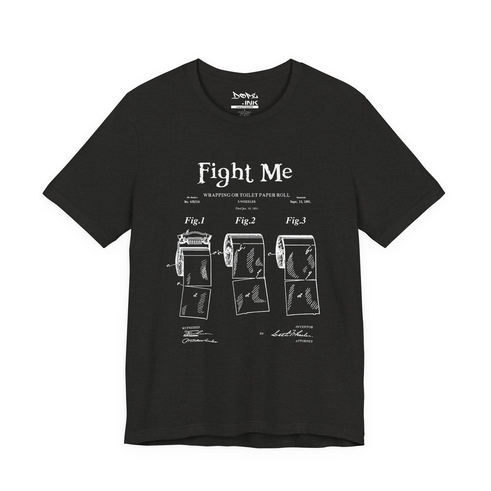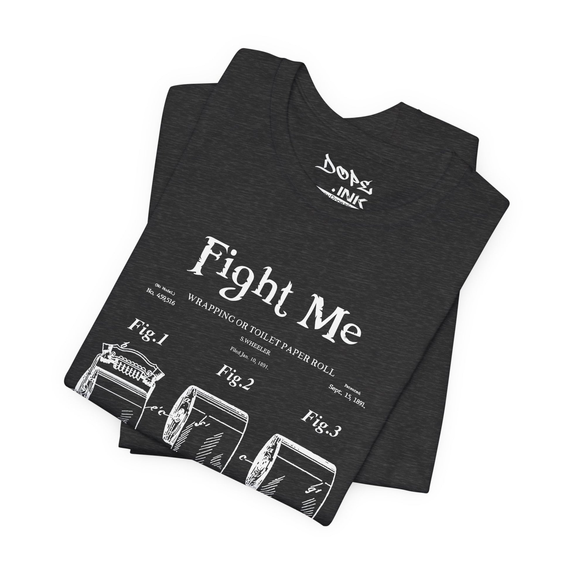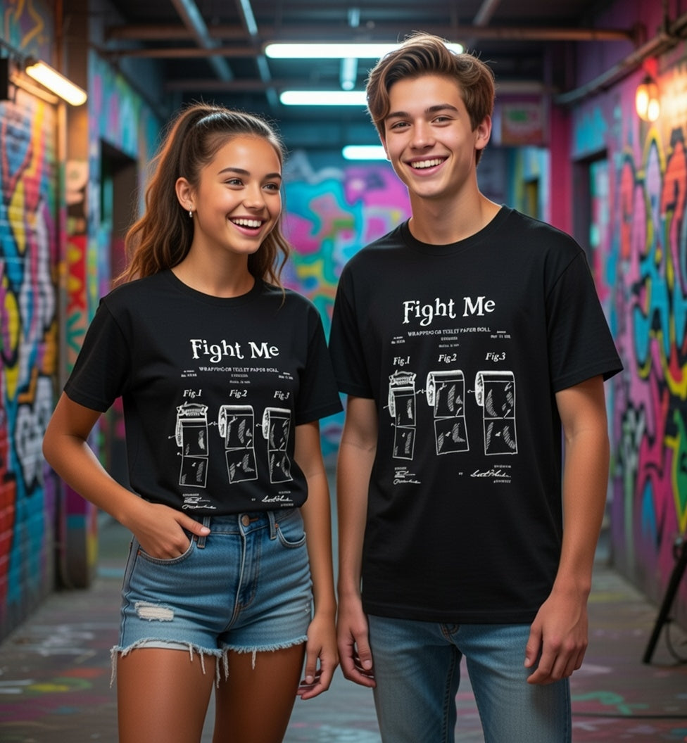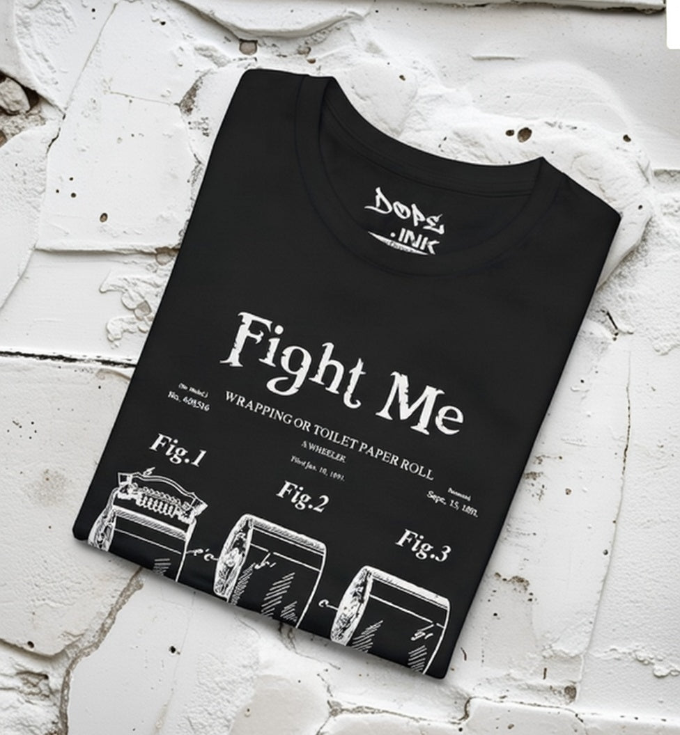 Wipe the competition with our "TP Patent" Streetwear from Dope.Ink! This premium unisex short-sleeve piece parodies a vintage patent drawing for "Wrapping for Toilet Paper Roll," boldly titled "Fight Me"—pure savage bathroom humor for prank legends, petty kings/queens, or anyone ready to square up over the last roll on game nights, house parties, or when you're just feeling extra confrontational about TP etiquette.