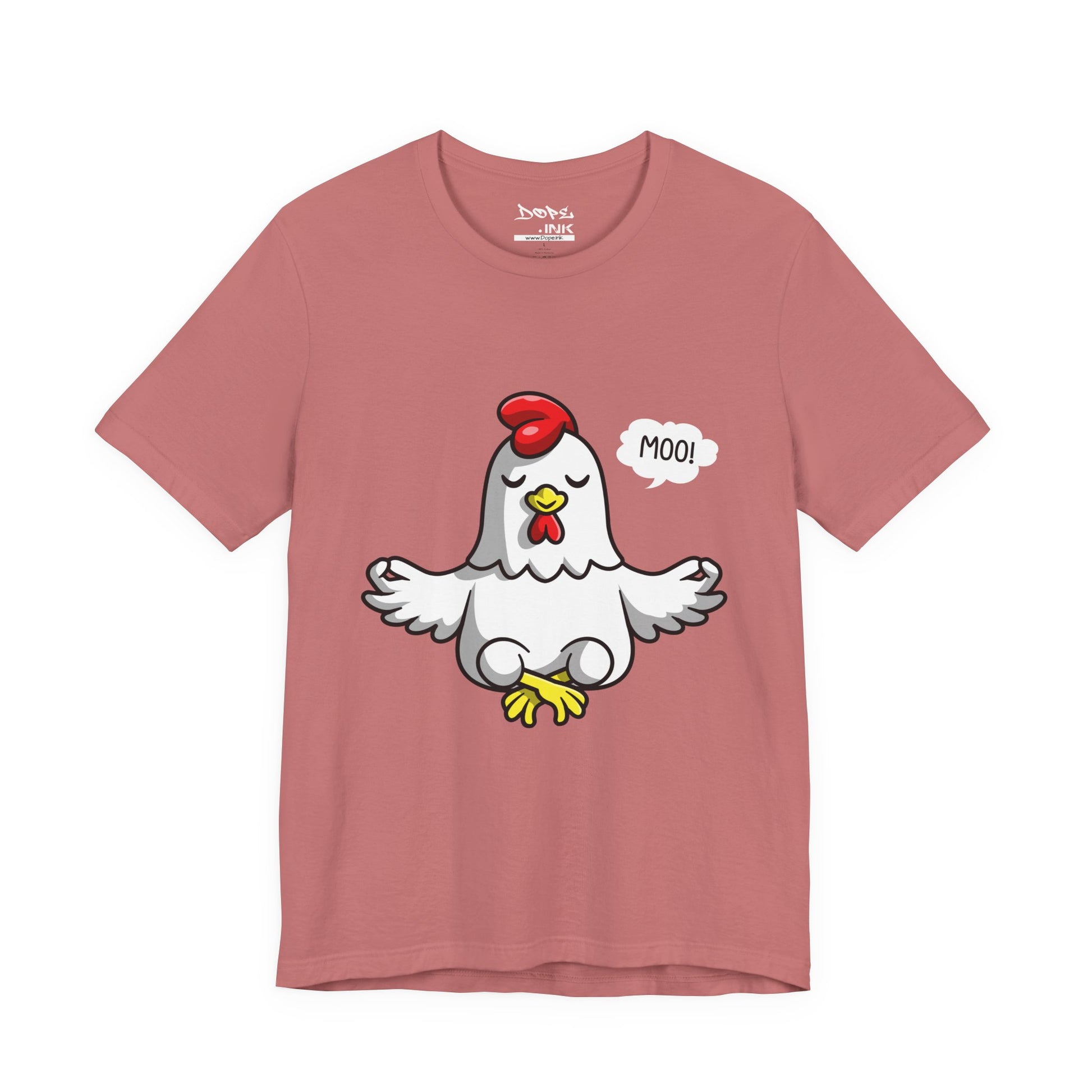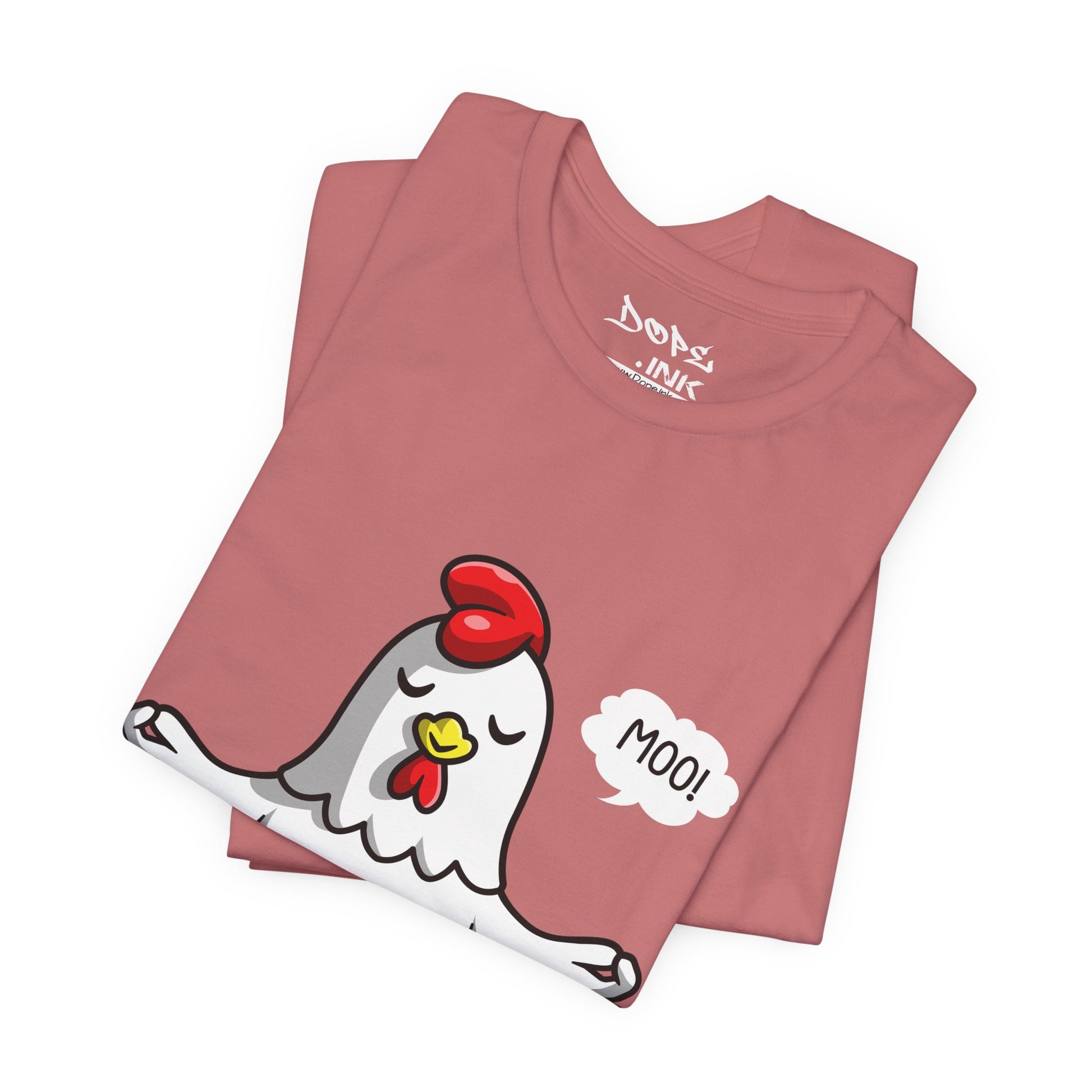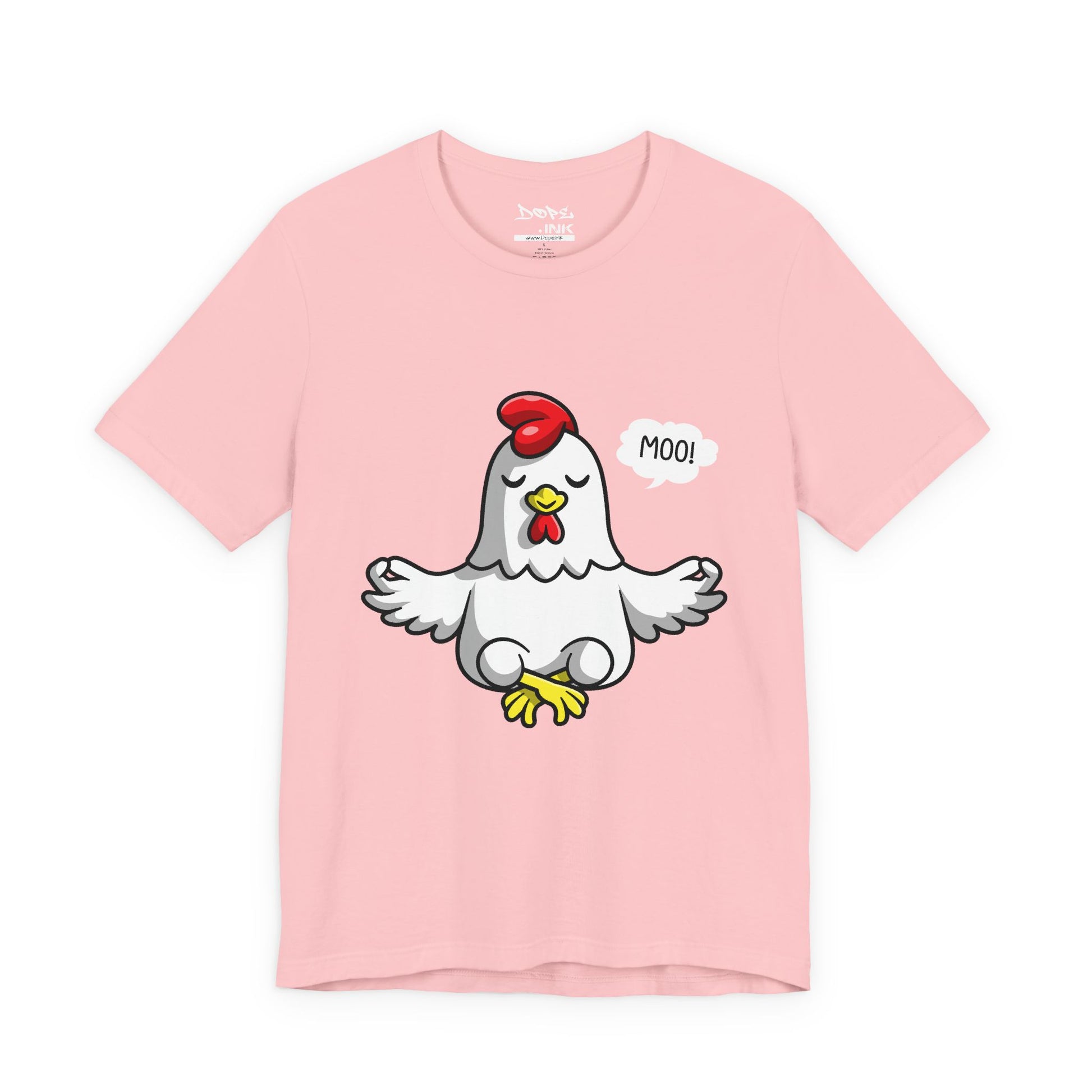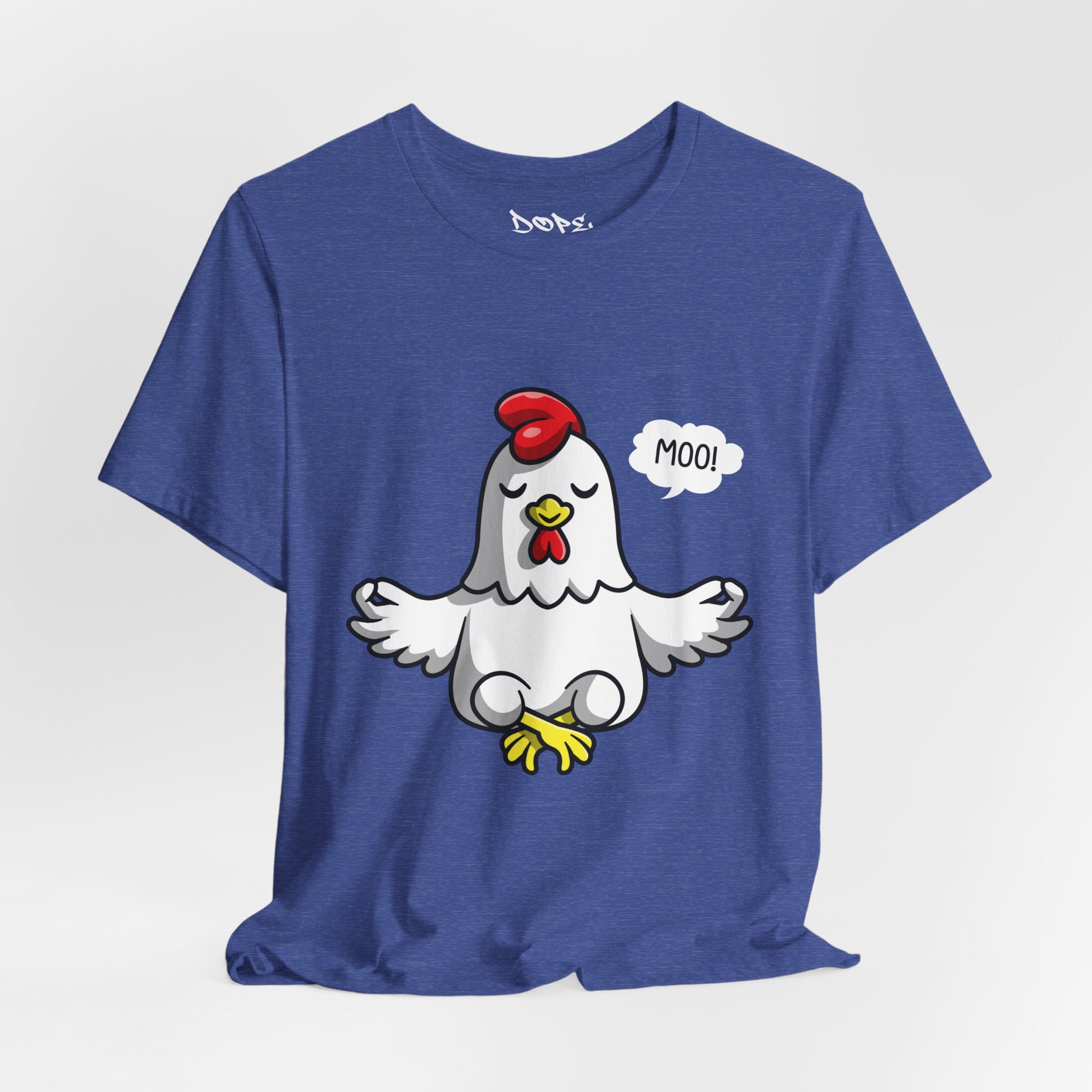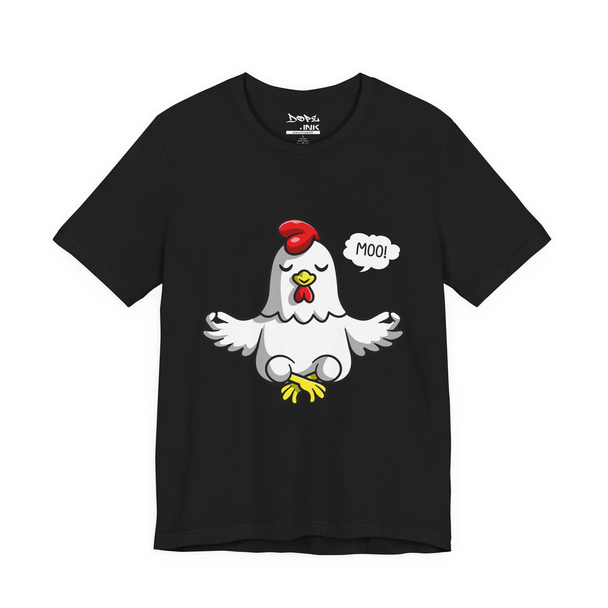 Find your inner peace (and confusion) with our "Zen Chicken Moo" Streetwear from Dope.Ink! This premium unisex short-sleeve piece features a serene chicken meditating in lotus position, eyes closed in total bliss, with a cheeky "MOO!" speech bubble—perfect for farmyard philosophers, animal pun lovers, yoga rebels, or anyone embracing that hilariously mixed-up, "what even is reality" vibe on chill days, workouts, or when you just need to confuse the herd.